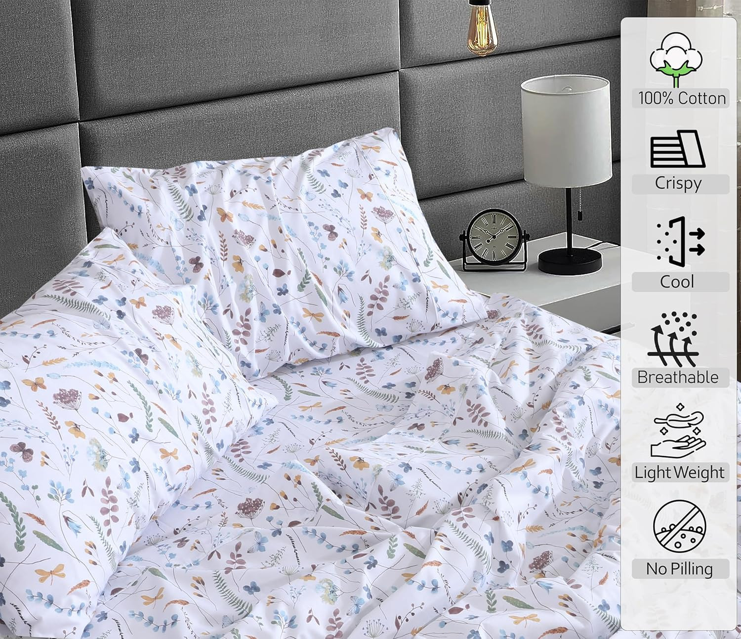 как выглядит 100 Cotton Sheets - Crispy Cooling Percale Sheets for Full Size Bed, Breathable фото