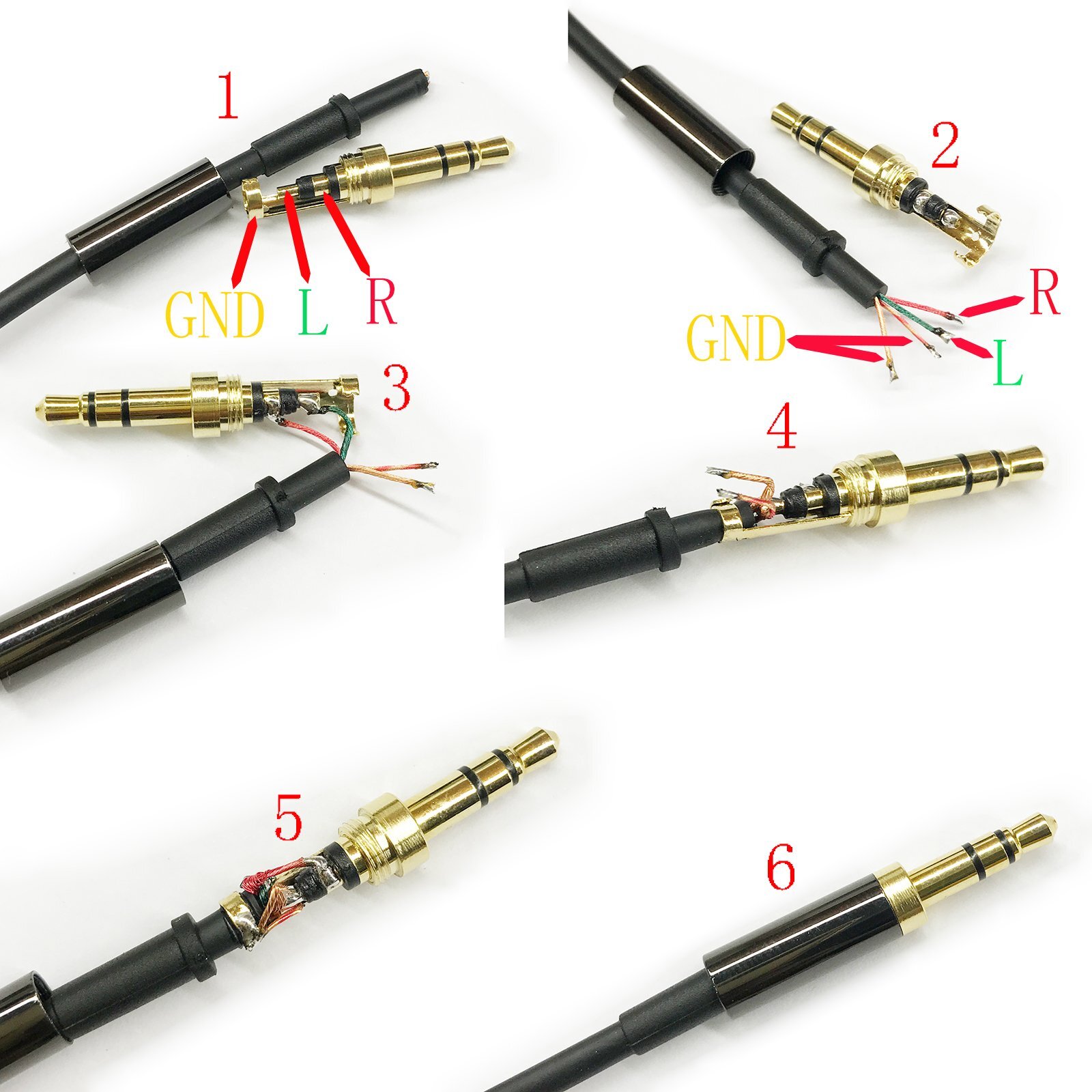 2pcs Gold 3 Pole 3.5mm Male Repair Headphone Jack Plug Metal Audio Soldering Hea