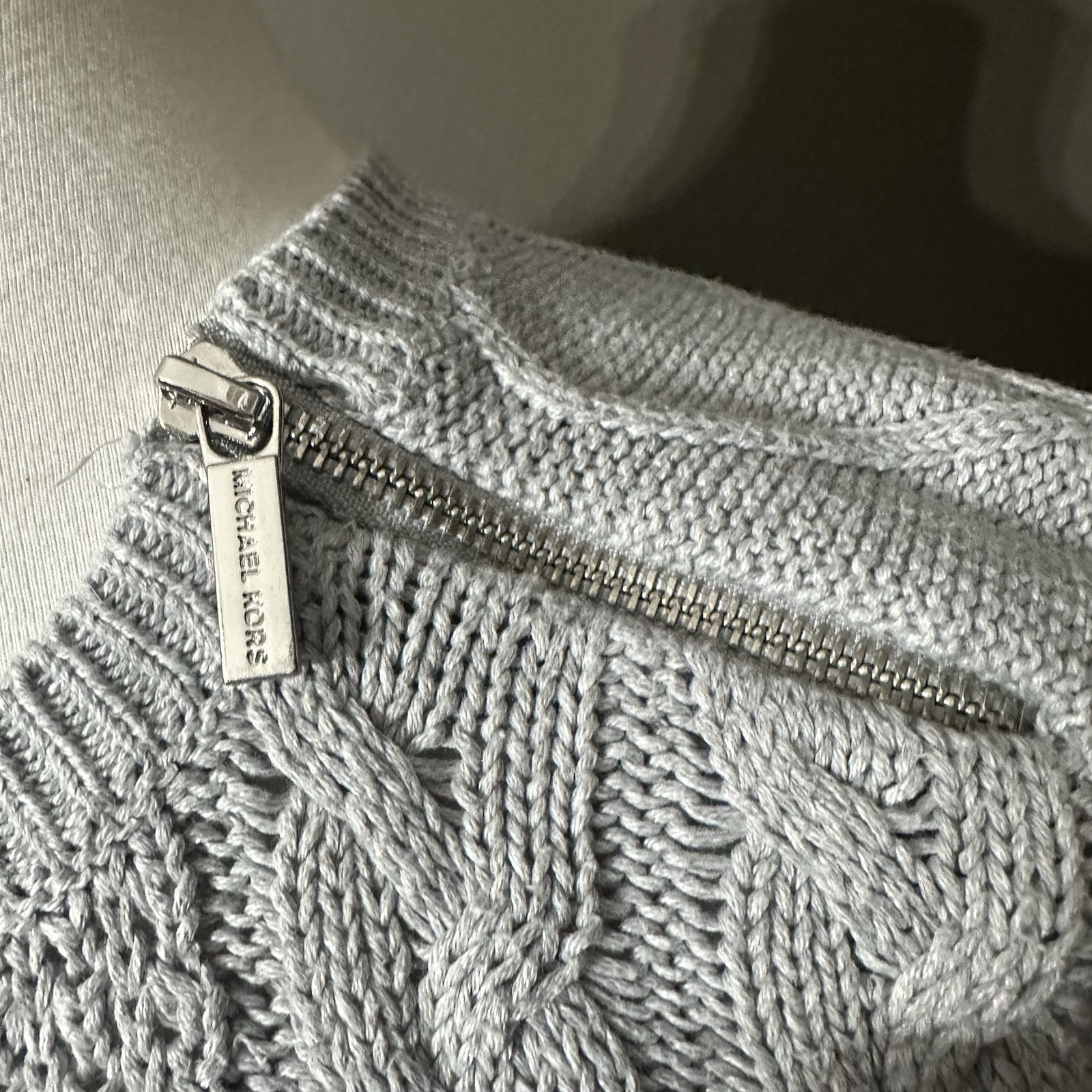 как выглядит MICHAEL Michael Kors Grey Cable Knit Sweater with Shoulder Zippers Womens Sz M фото