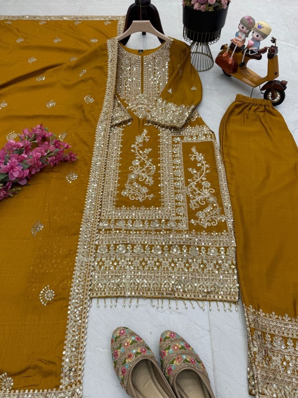 как выглядит Beautiful Designer Chinon Silk Salwar Kameez With Dupatta For Reception фото