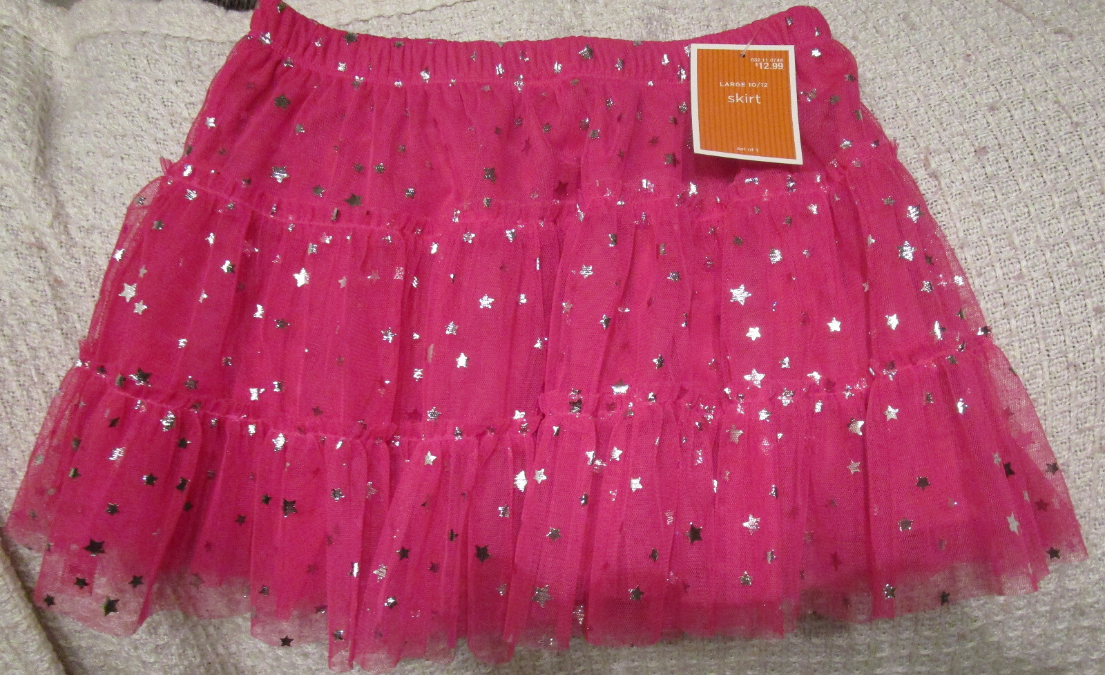 NWT Girls Tulle Mesh Skirt Silver Stars Elastic Waist Black or Pink 4/5, 10/12