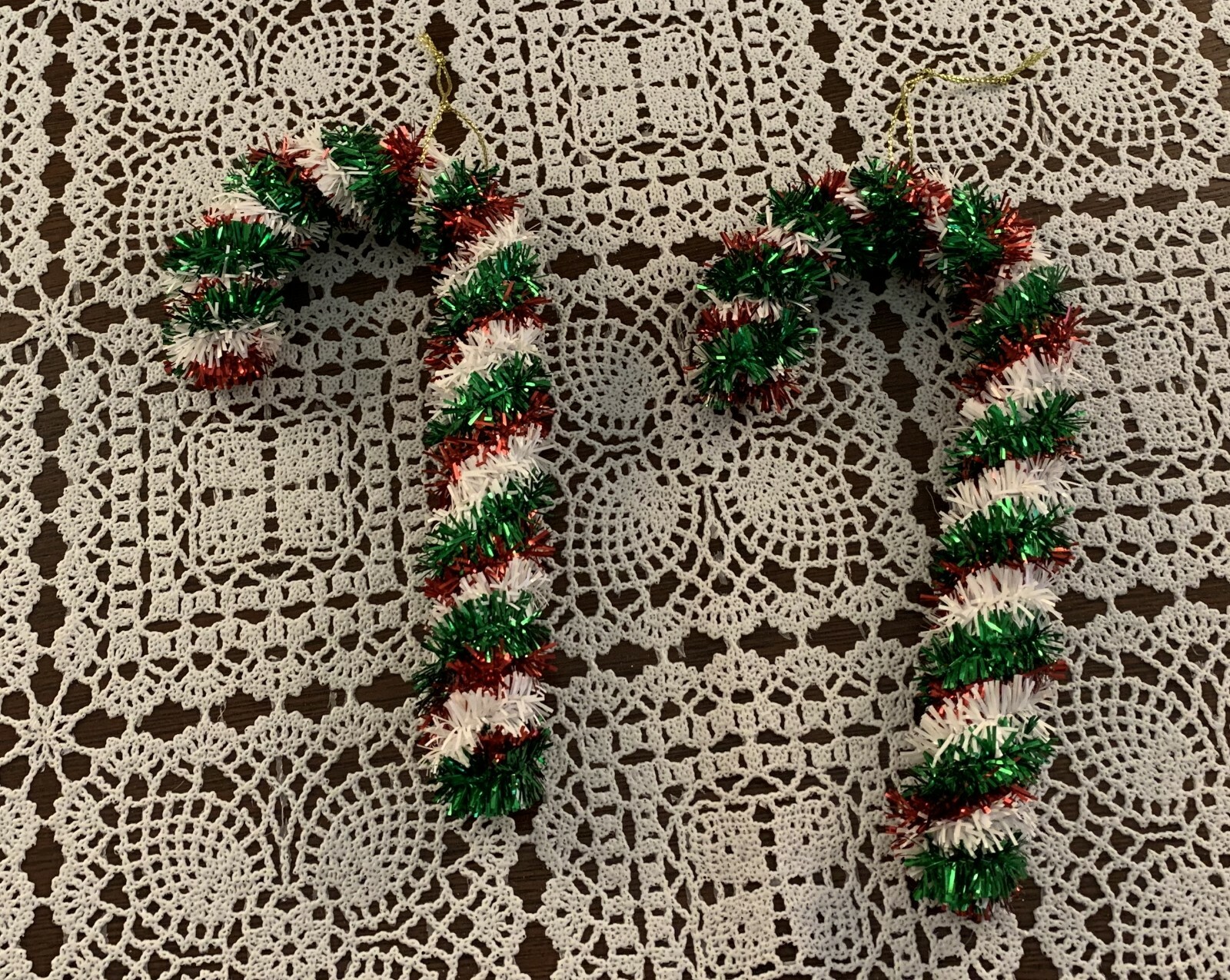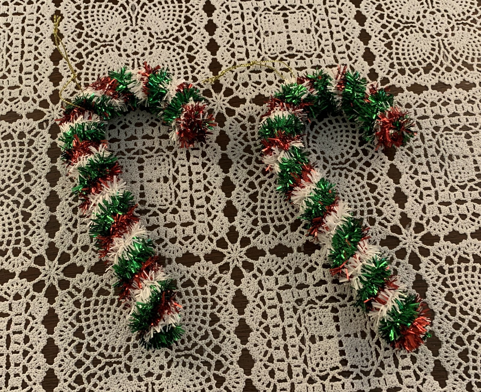 • Two Tinsel Candy Cane 6 Inch Christmas Tree Ornaments Unique Nostalgic Glittery