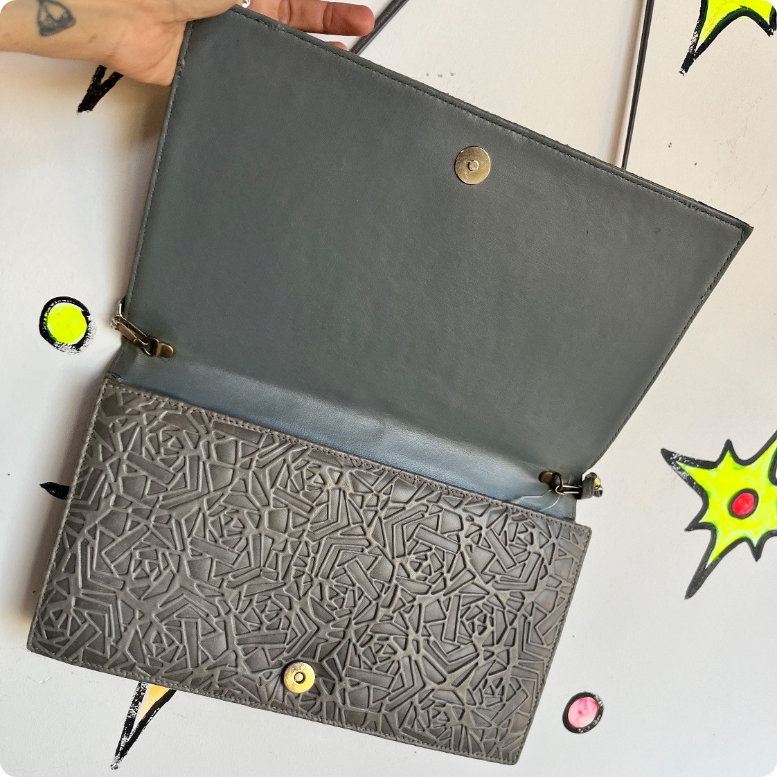 как выглядит Vintage 80s Gray Red Black Snakeskin Leather Art Wear Bag Designer Handbag Purse фото