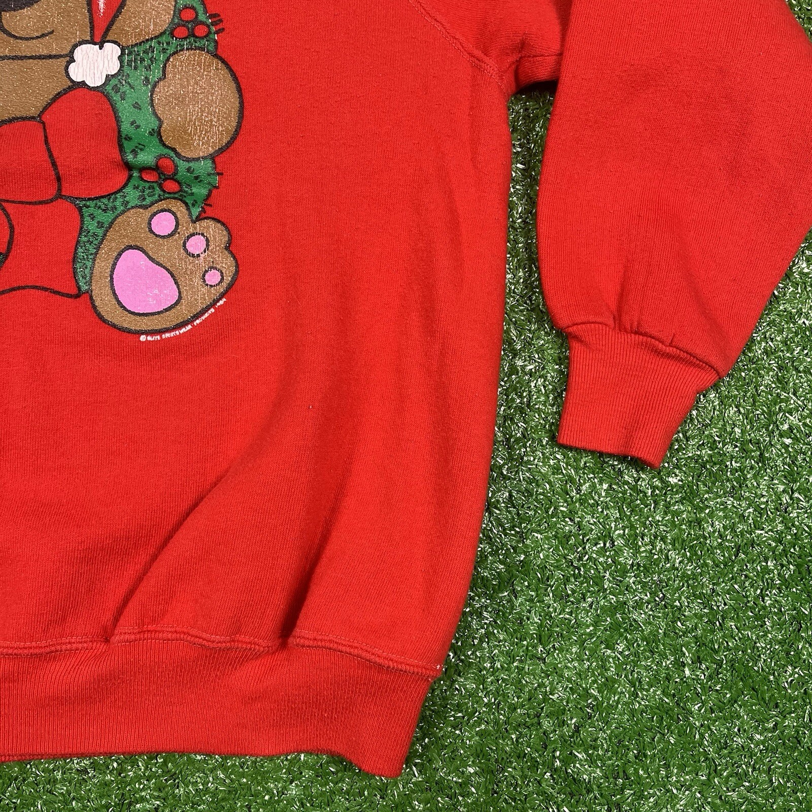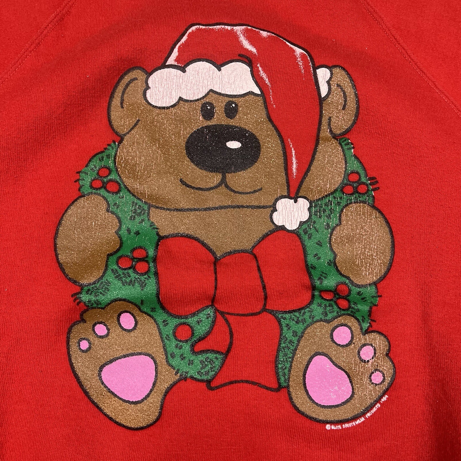 Vintage 1984 Christmas Teddy Bear Sweater Sweatshirt Adult Medium Made In USA