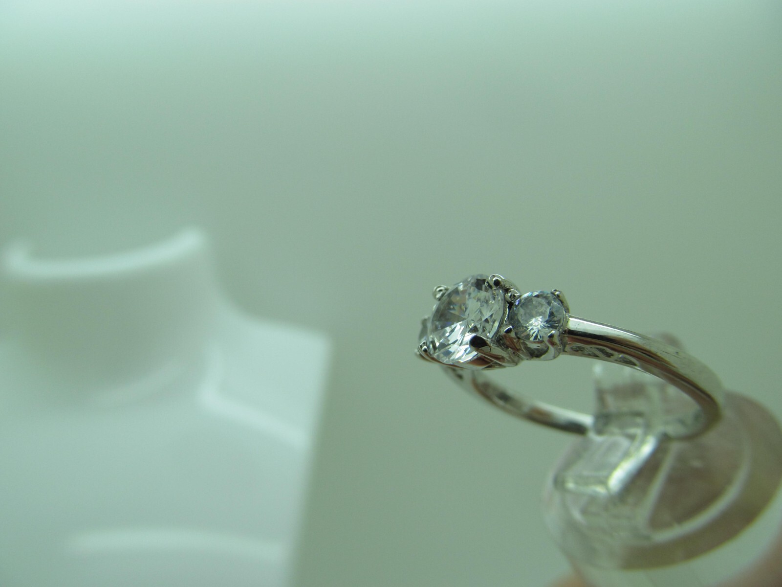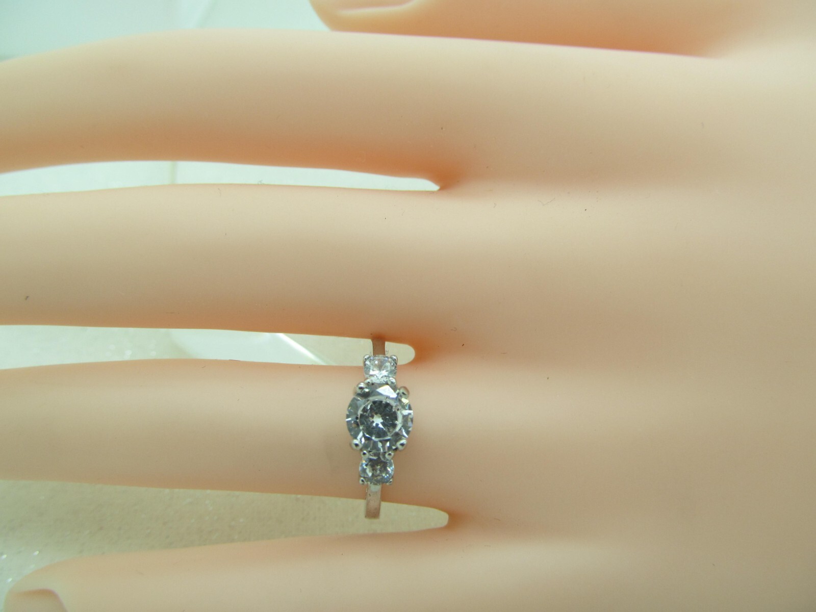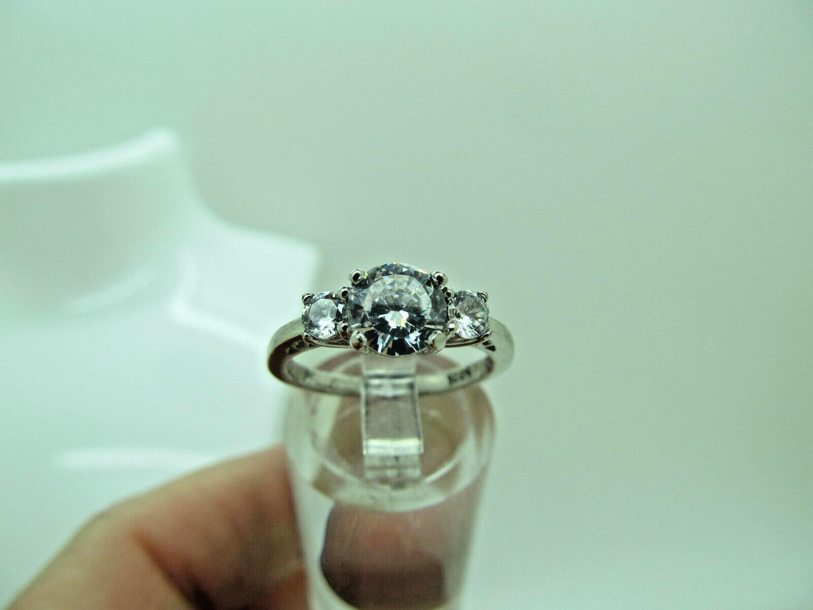как выглядит .925 STERLING SILVER Round Cut CLEAR STONE 3 STONE RING size 6 Lovely Sparkle фото