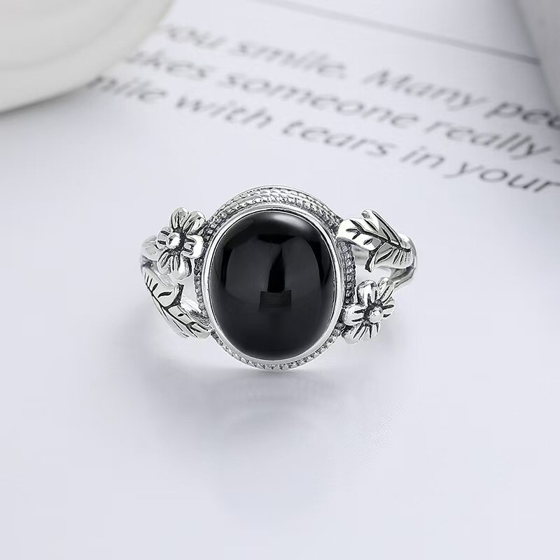 как выглядит 925 Sterling Silver Genuine Marcasite and Black Stone Open Ring - Sizes 5-9 фото