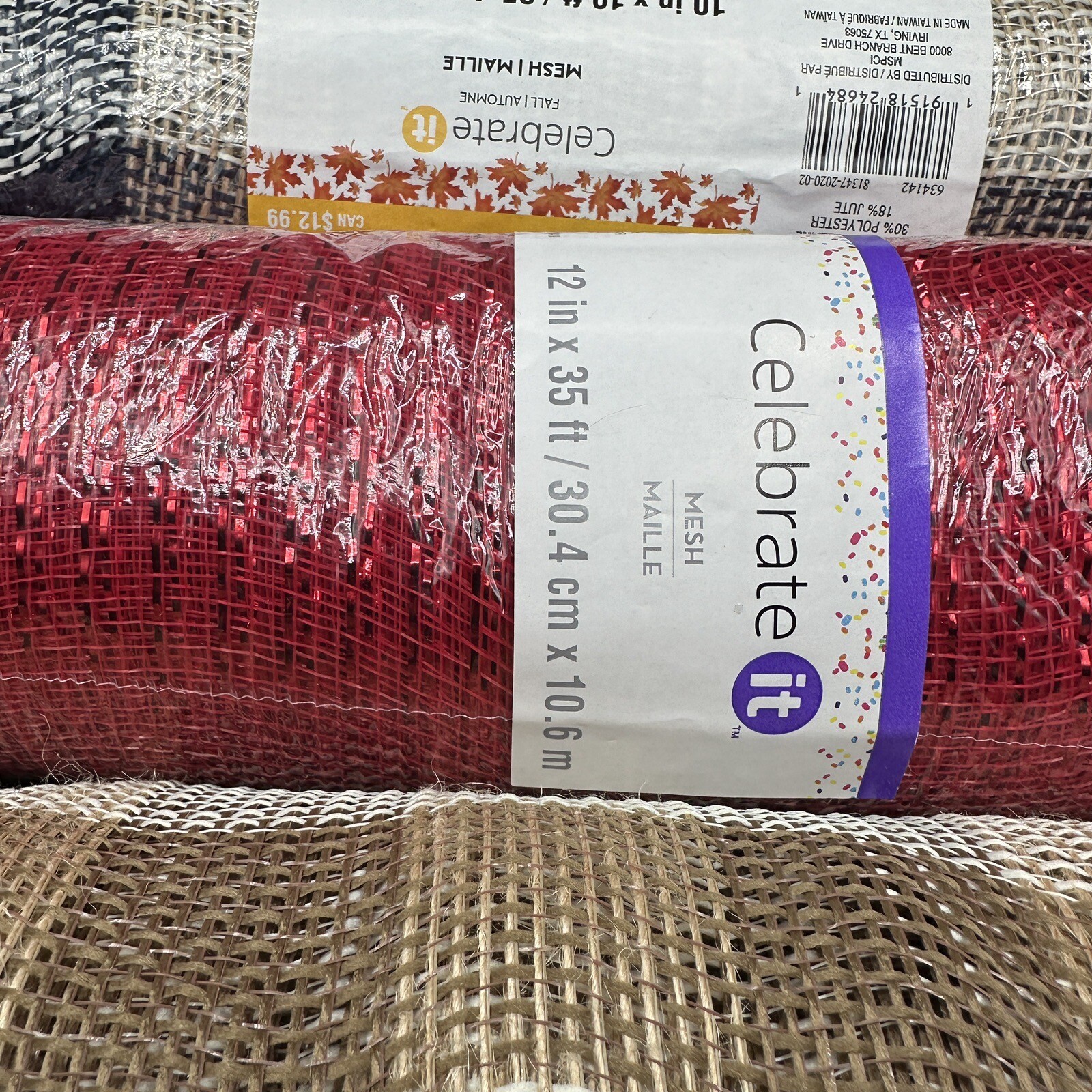 Deco Mesh Lot Of 5 Rolls Red Blue Tan Celebrate It Wreaths Holiday Crafts Check