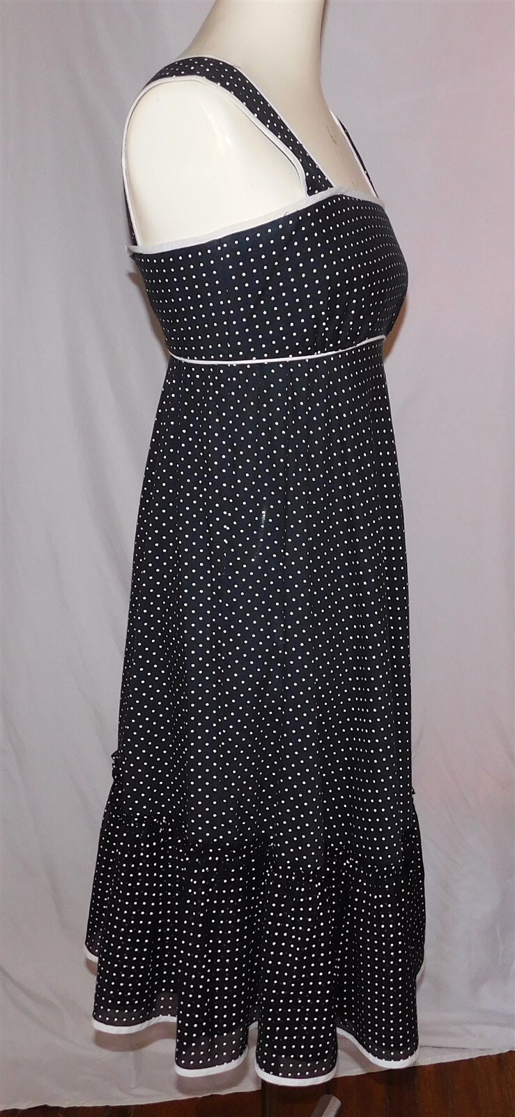 Vtg LESLIE FAY Black White Polka Dot Retro Pinup Party Dress Sundress