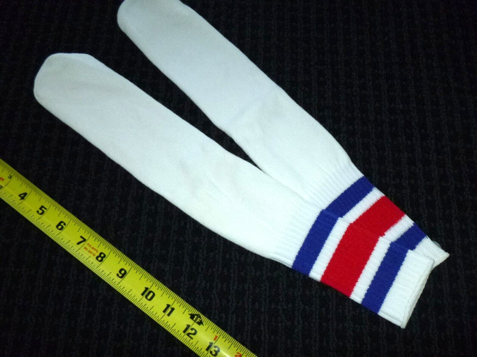 NOS Vtg 80s Striped Tube Socks Blue and Red Stripes 18 L