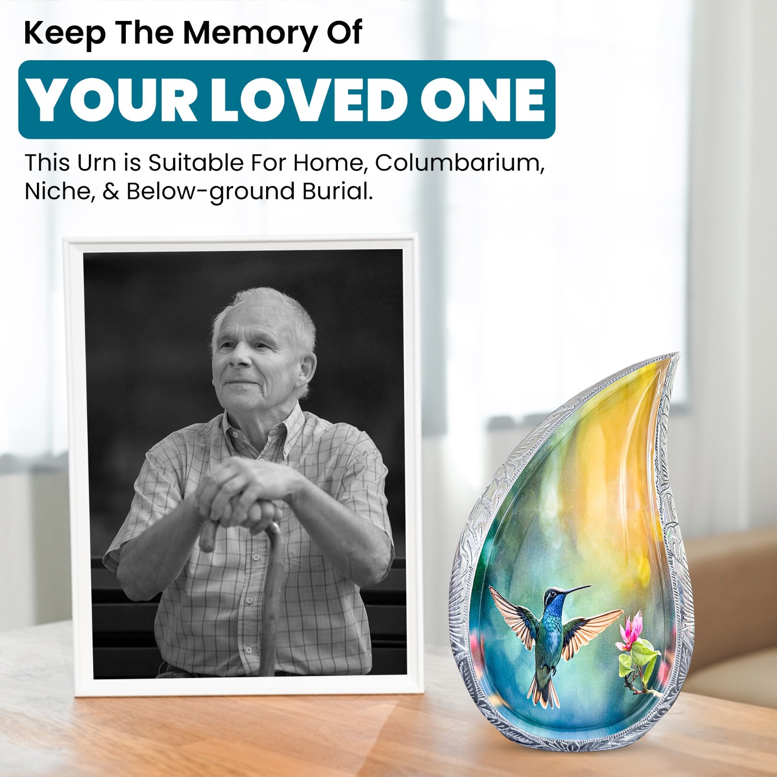 • TOSENG Memorials Teardrop Urn for Ashes Large Blue Hummingbird Cremation Urn