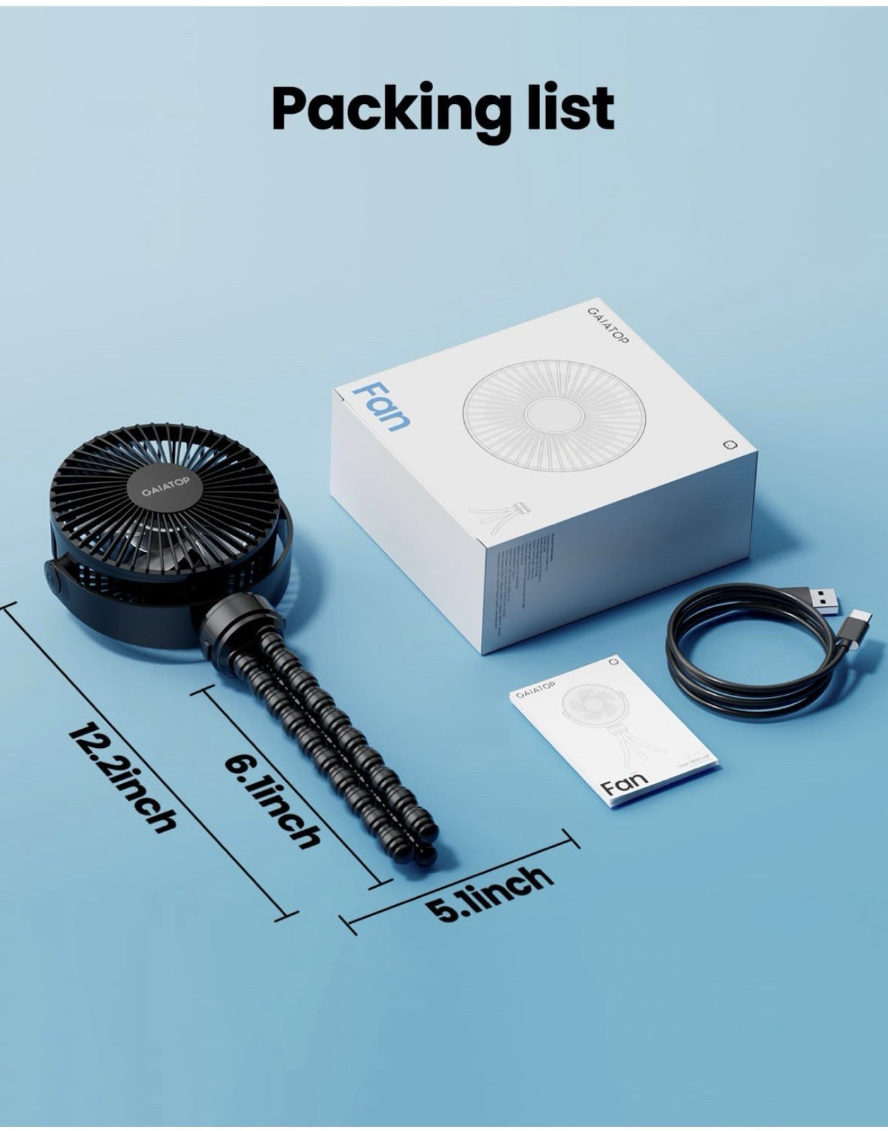Portable Clip-On Stroller Fan 3-Speed, Rechargeable, 360 Rotation for Summer