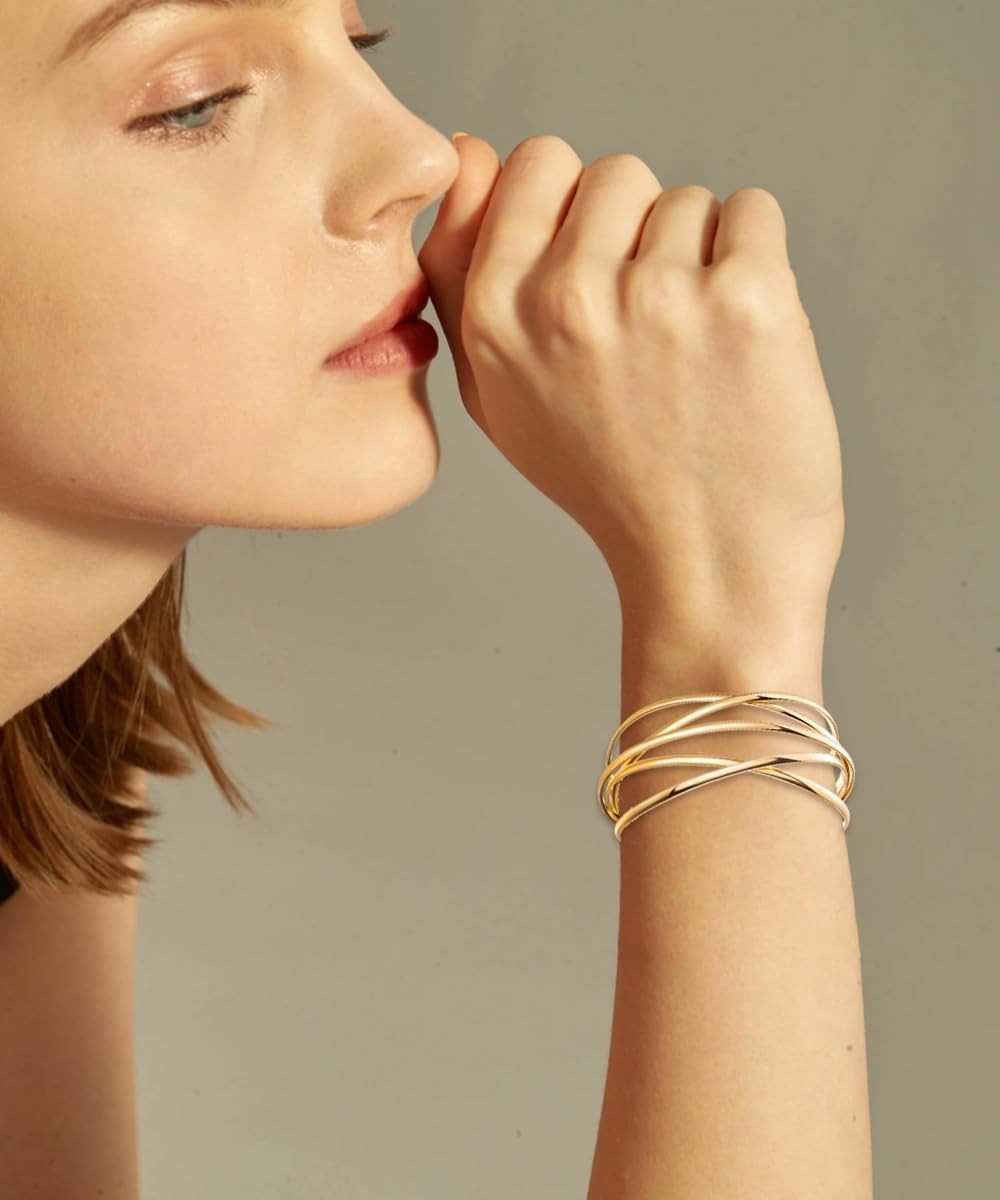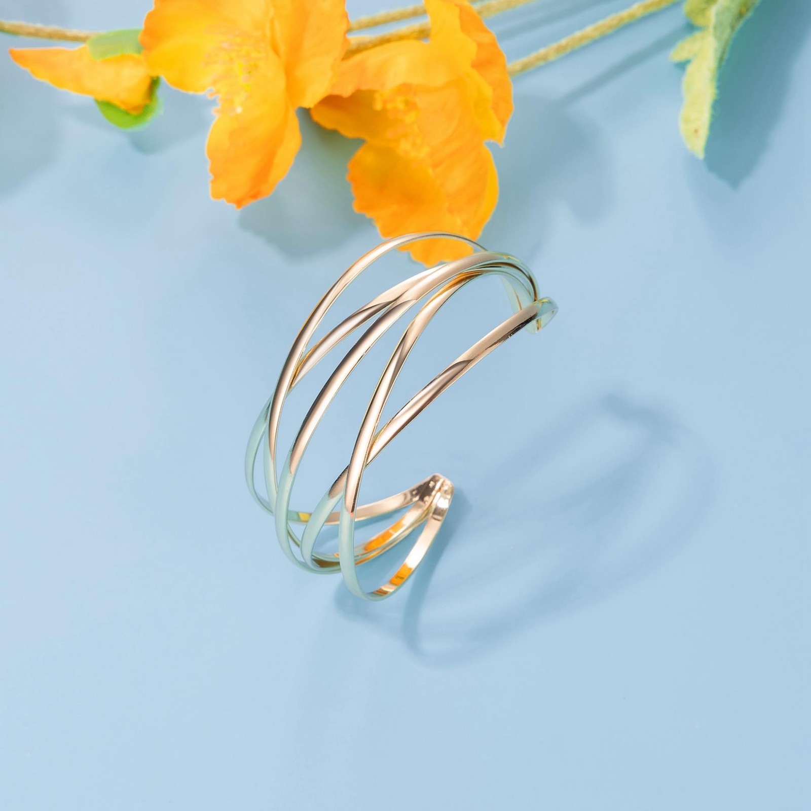 Cuff Bangle Bracelets for Women Trendy Wide Wire Cuff Bracelets Gold Open Adjust