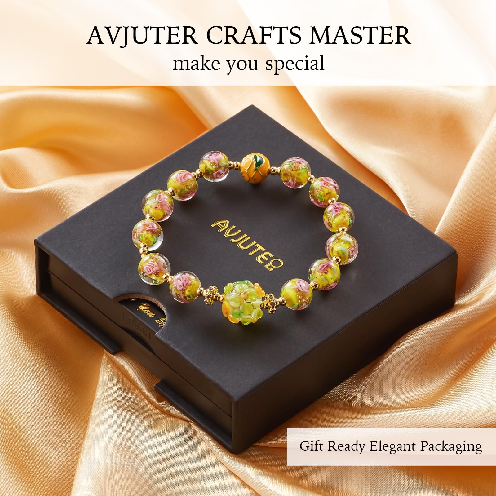 как выглядит Glow in The Dark Beaded Bracelets - Yellow Firefly Beads Stretch Bracelet for Wo фото