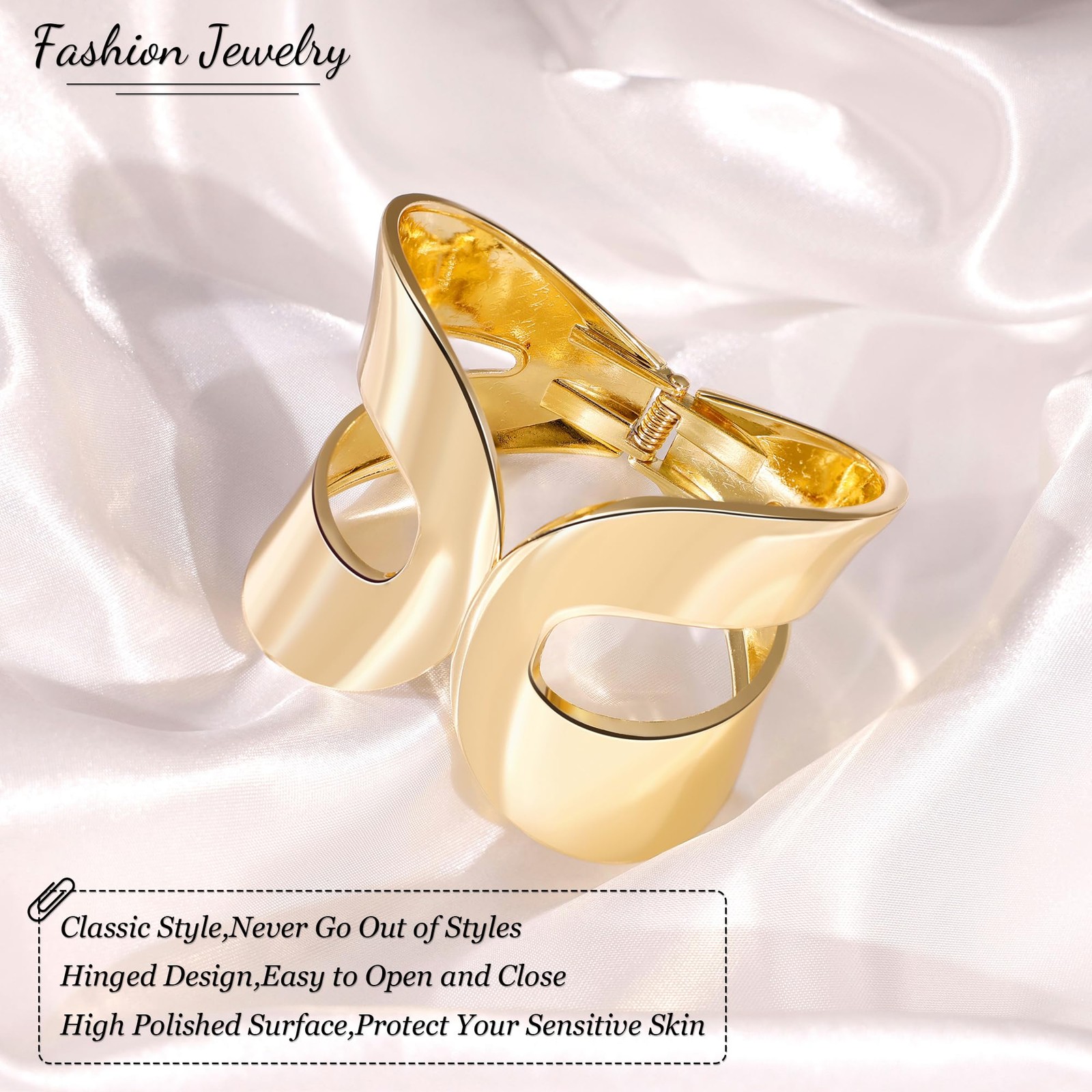 18K Gold Plated Wide Chunky Gold Cuff Bracelets for Women Chunky Bangle Bracelet