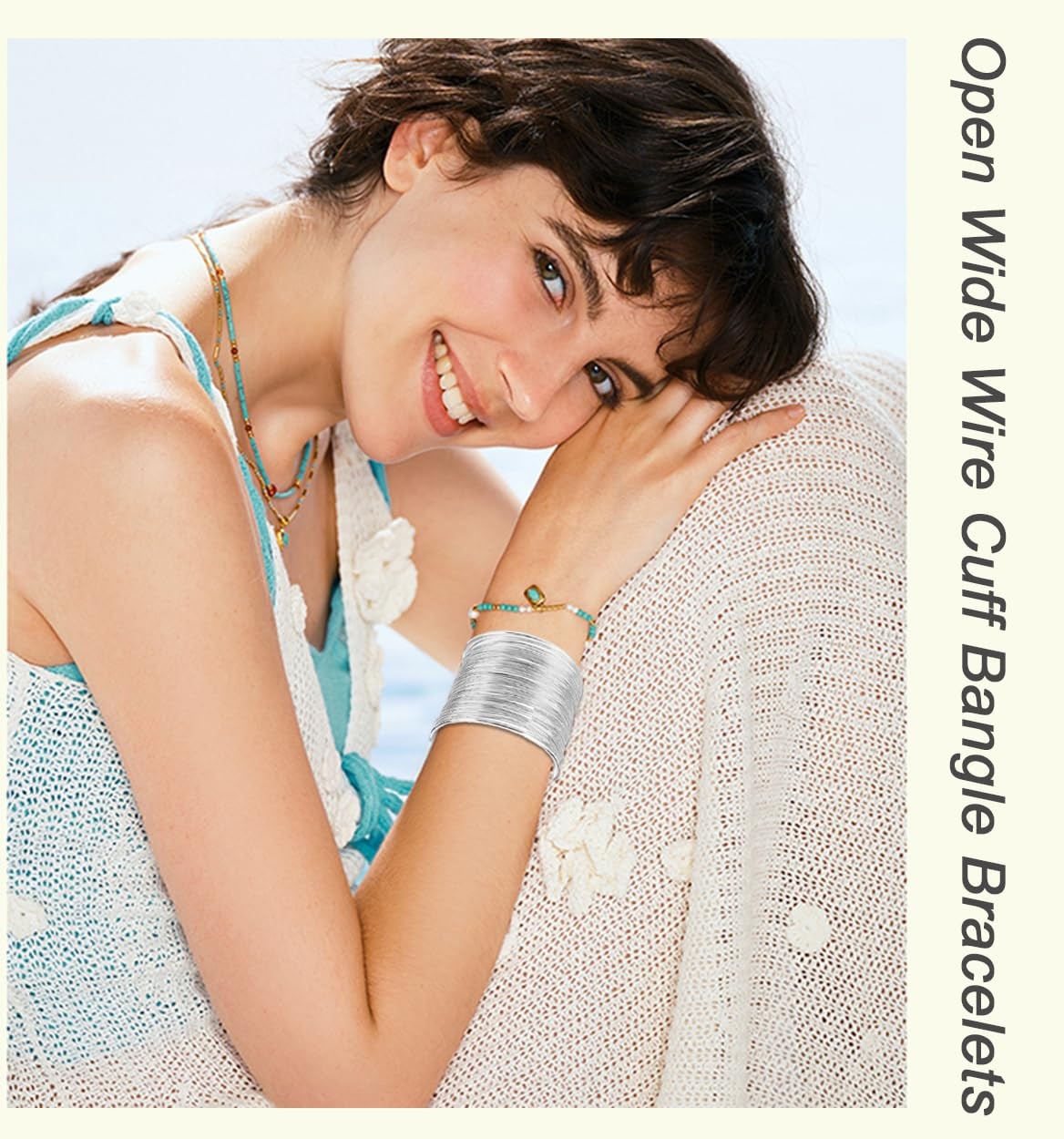 2Pcs Cuff Bangle Bracelet for Women Open Wide Wire Bracelets Gold Wrist Cuff Wra