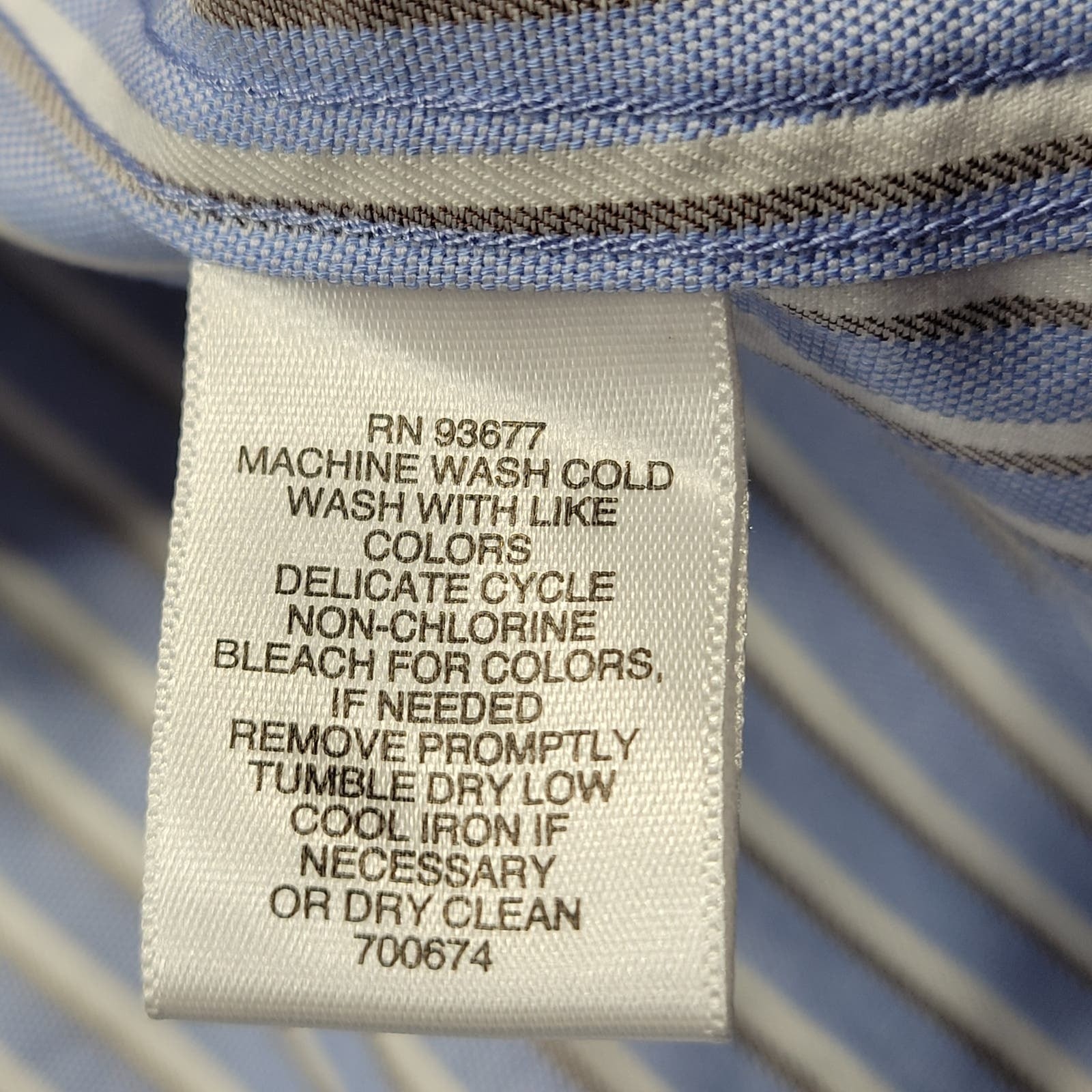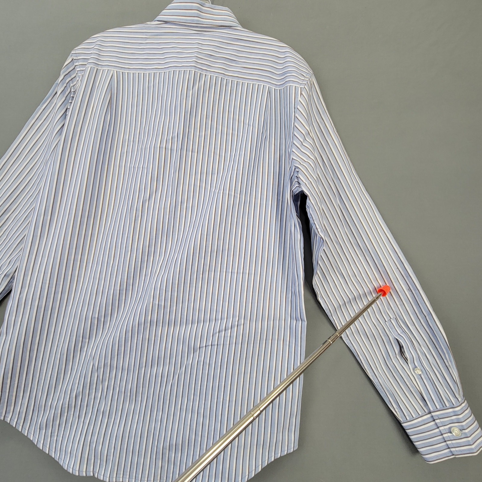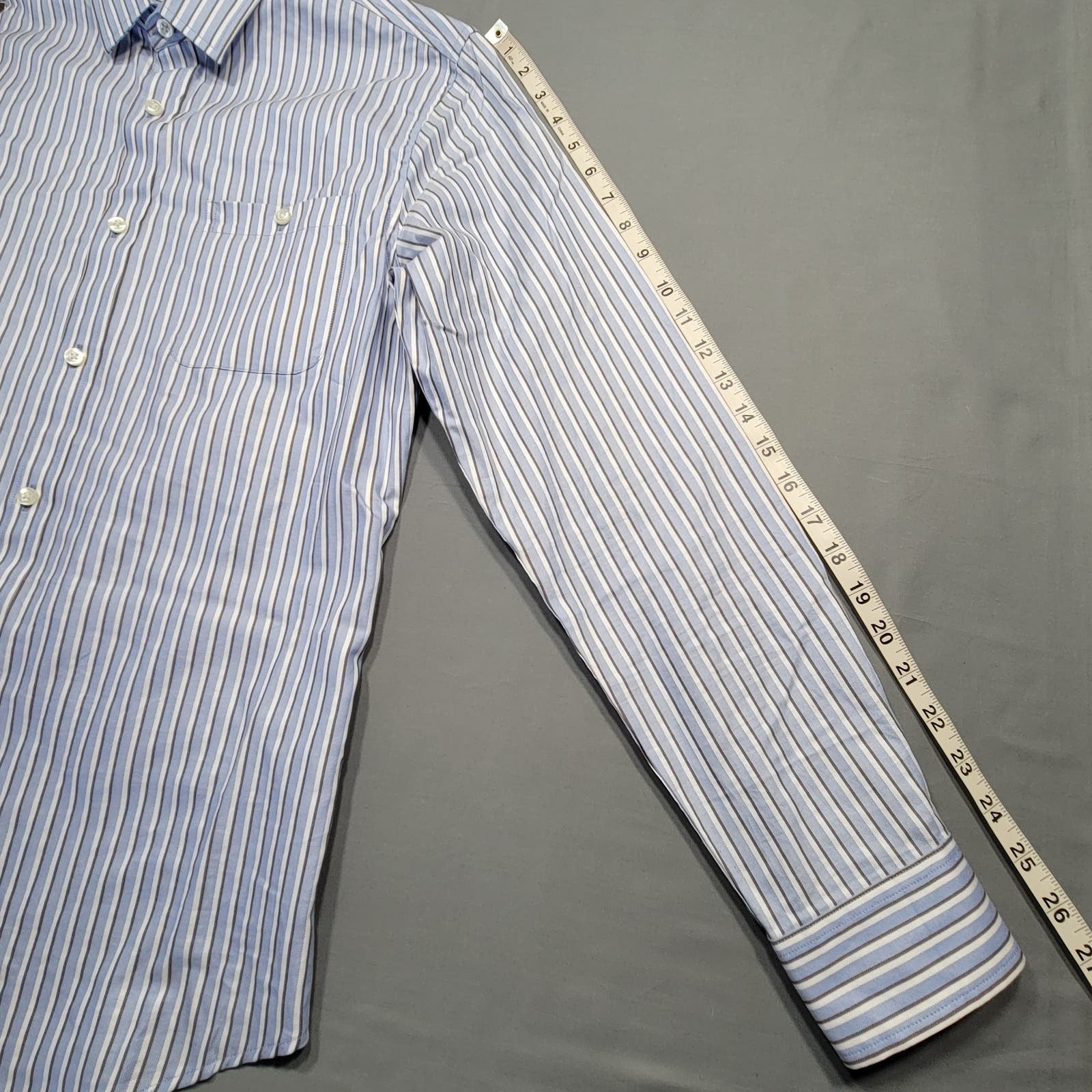 как выглядит Claiborne Blue Preppy Stripe Shirt Classic Button Up Long Sleeve Slim Men Size M фото