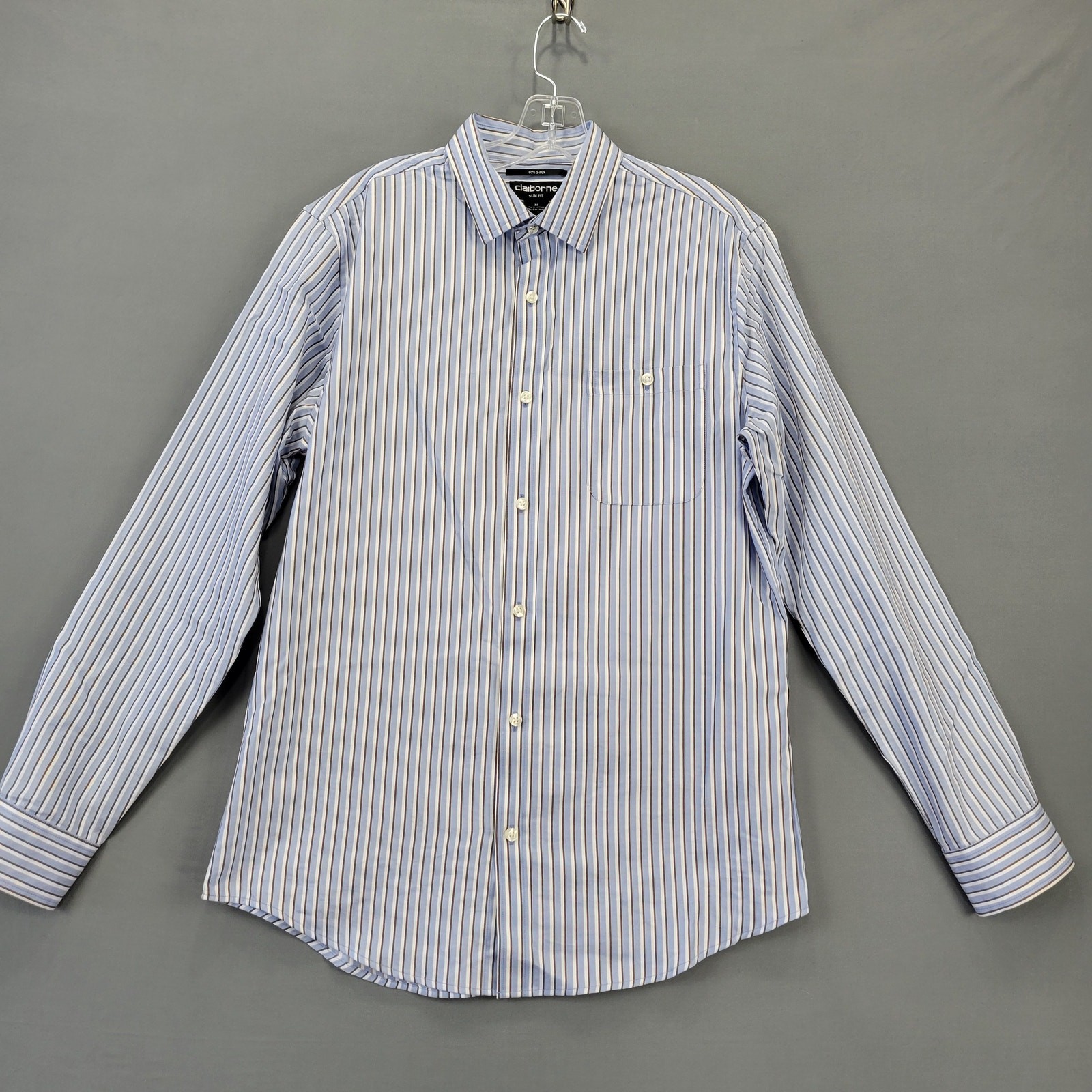 Claiborne Blue Preppy Stripe Shirt Classic Button Up Long Sleeve Slim Men Size M