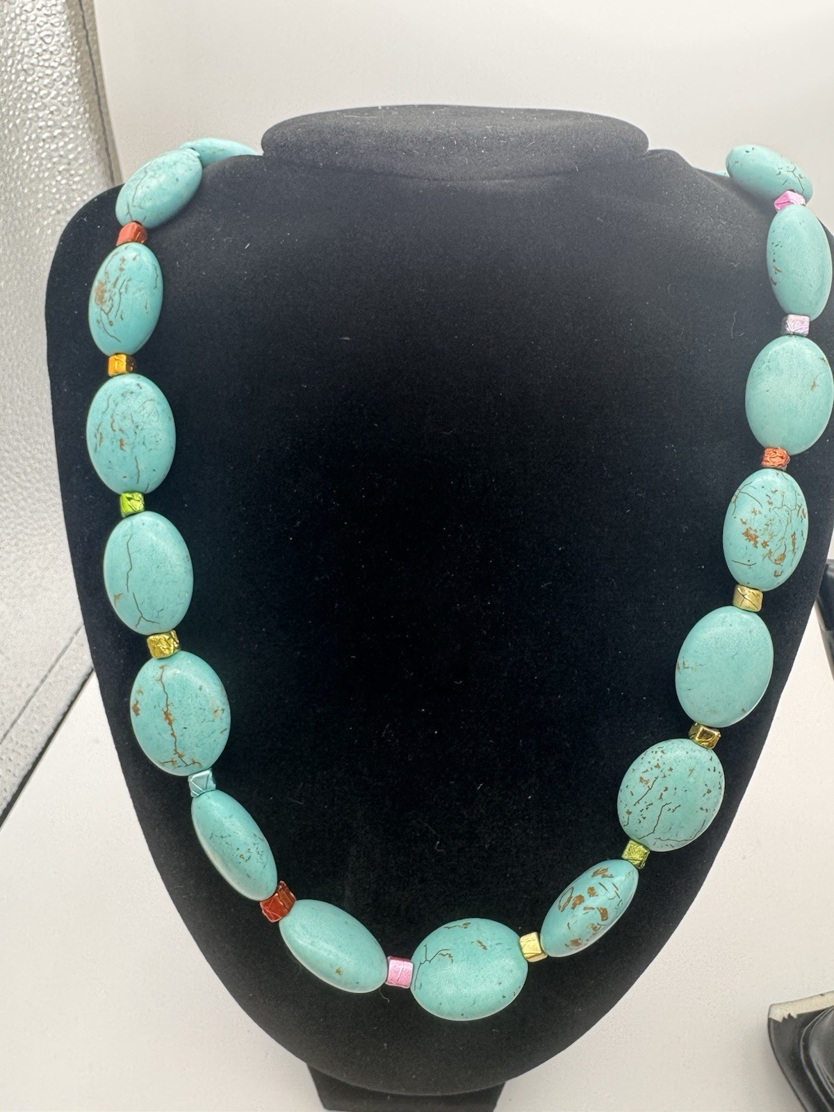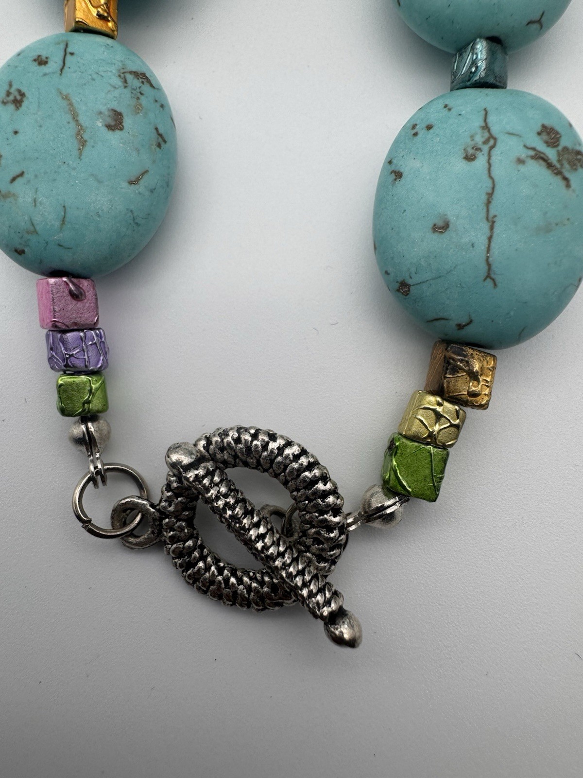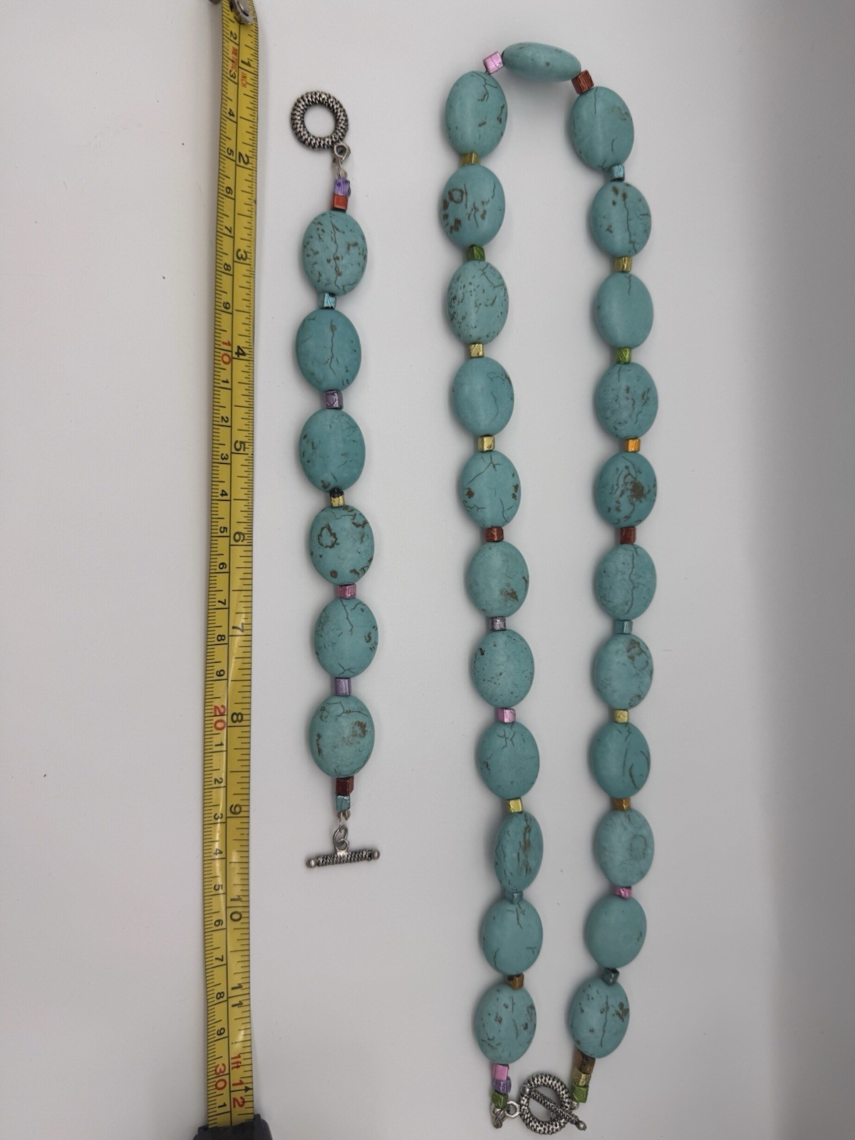 Bohemian Style Chunky Turquoise-Colored Bead Necklace Bracelet Set A