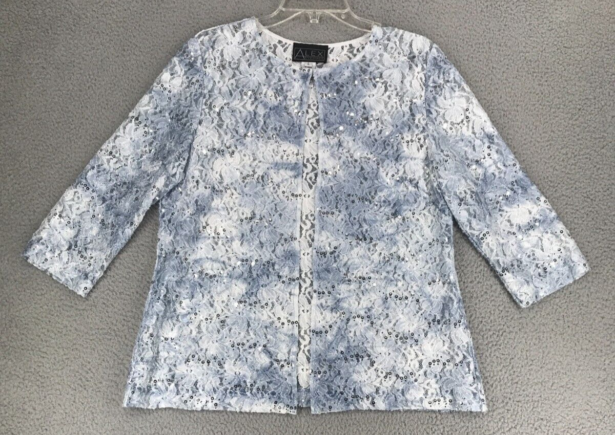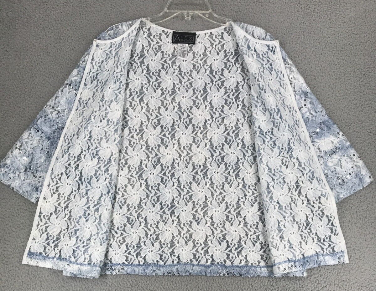 Alex Evenings Formal 3 pc Skirt Suit Size L Sequined Lace Blue Skirt Size XLP