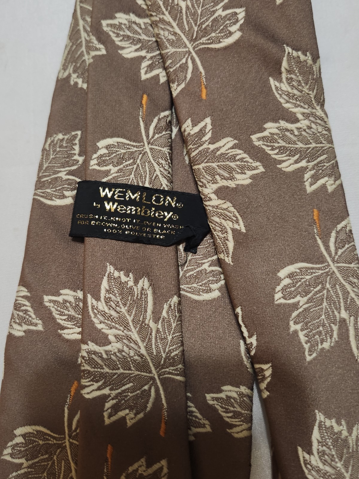 Vintage Mens Wemlon Wembley Poly Necktie Wide 1970s Maple Leaf Retro Tie Beige