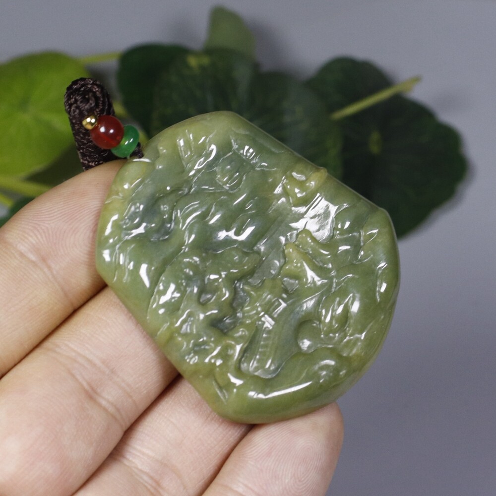 как выглядит Certified Green Yellow 100 Natural A Jade Jadeite Pendant Landscape    6497 фото
