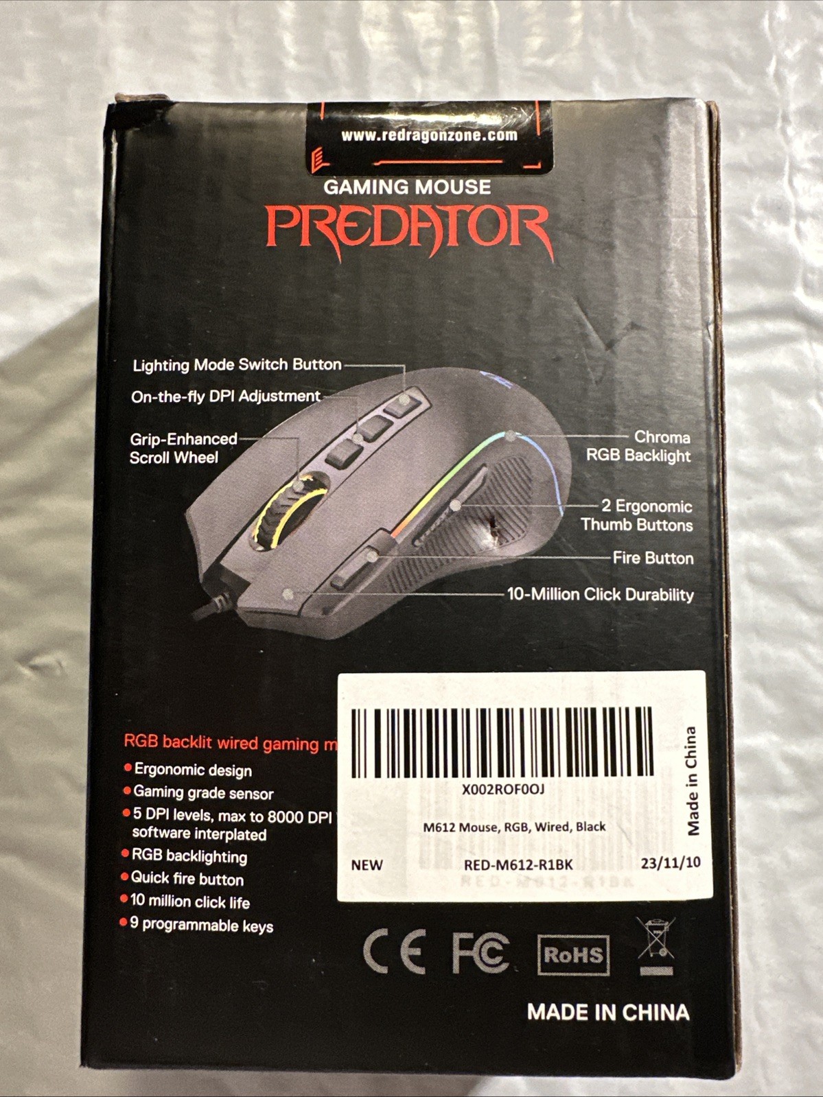 Redragon M612 Predator RGB Gaming Mouse, 8000 DPI Wired Optical,11 New Sealed