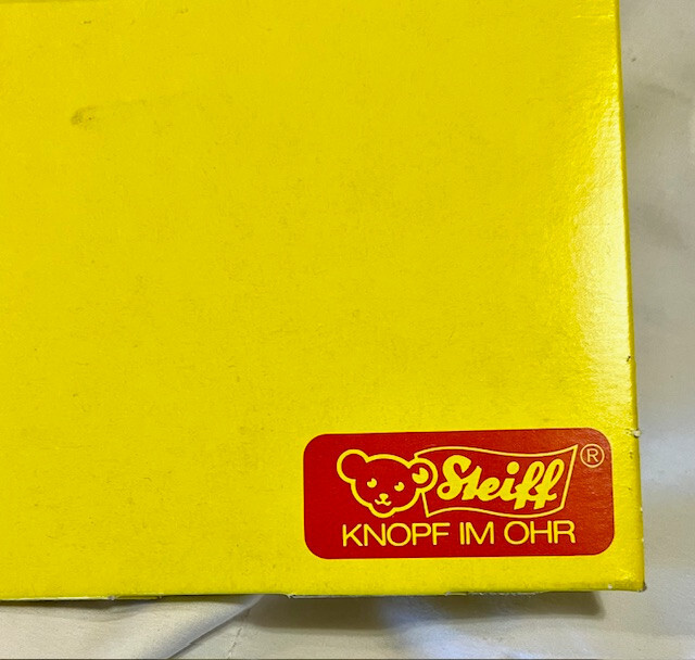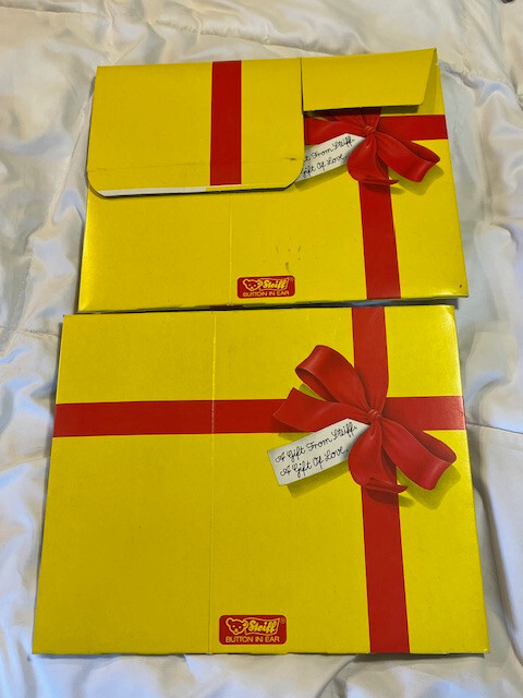 2 Steiff Gift Boxes Yellow Red Bow Vintage Empty Box New / Vintage West Germany