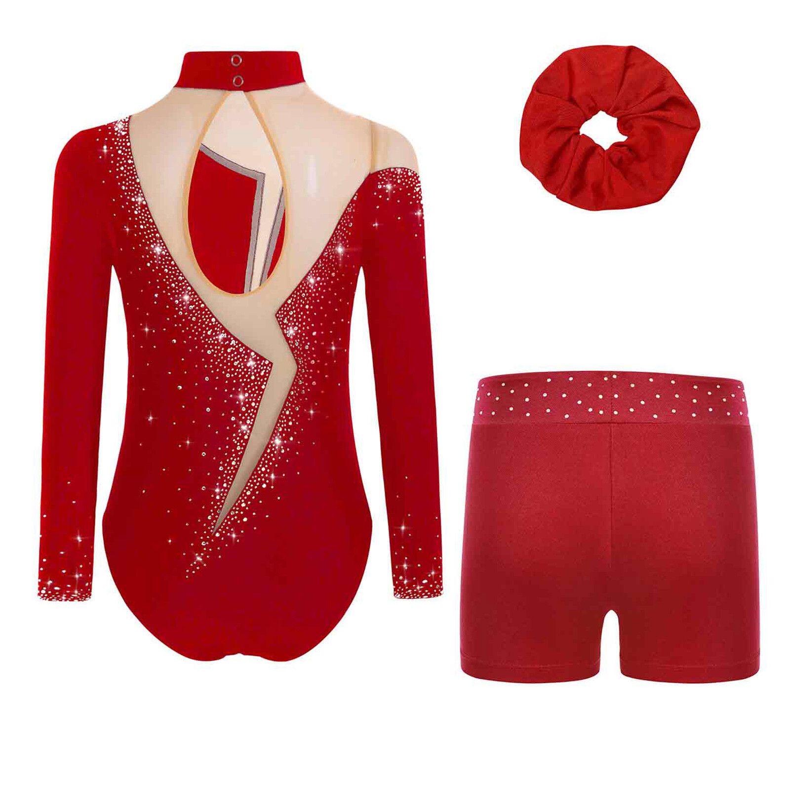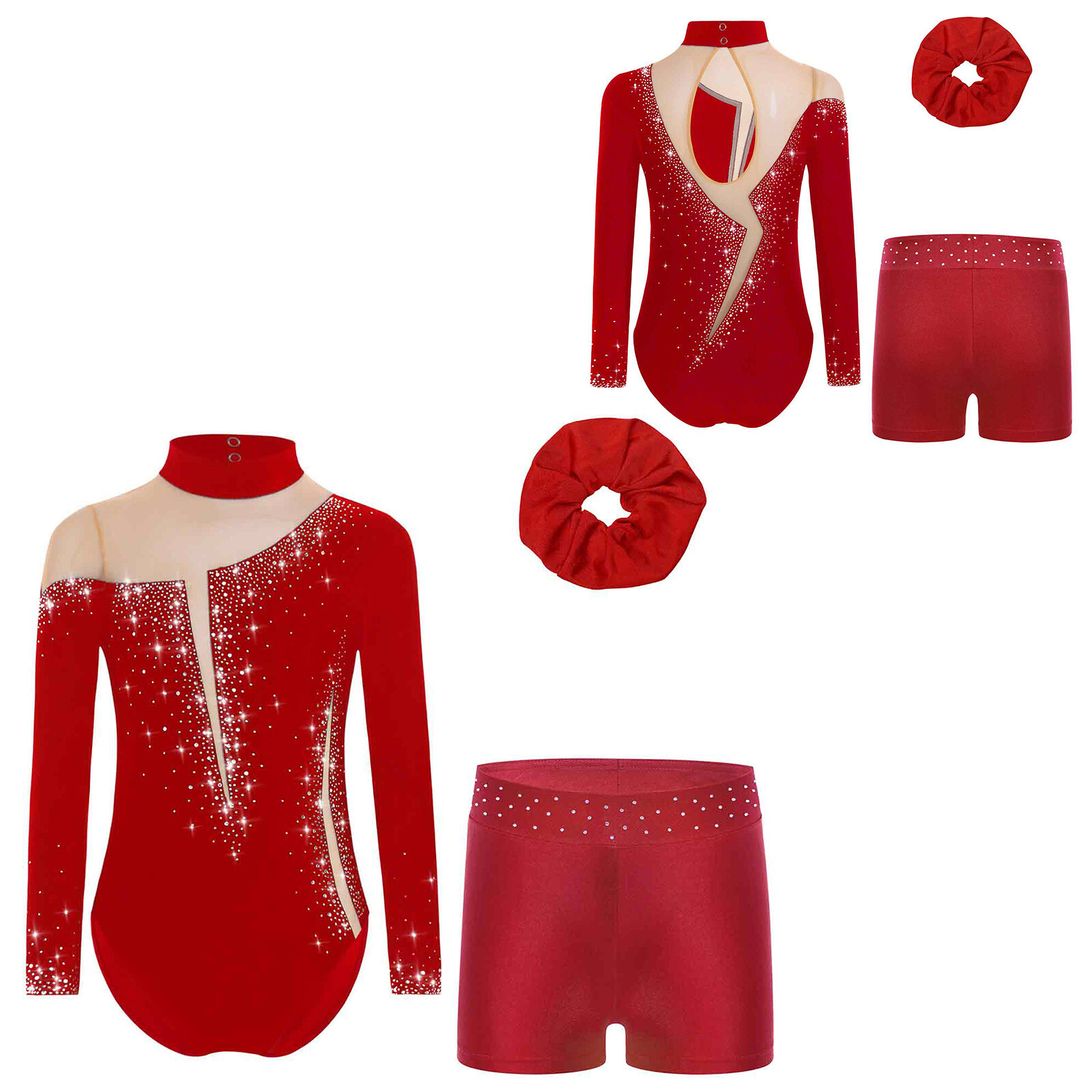 как выглядит Girls Glittery Rhinestones Gymnastics Leotards Bodysuit With Ballerina Unitards фото