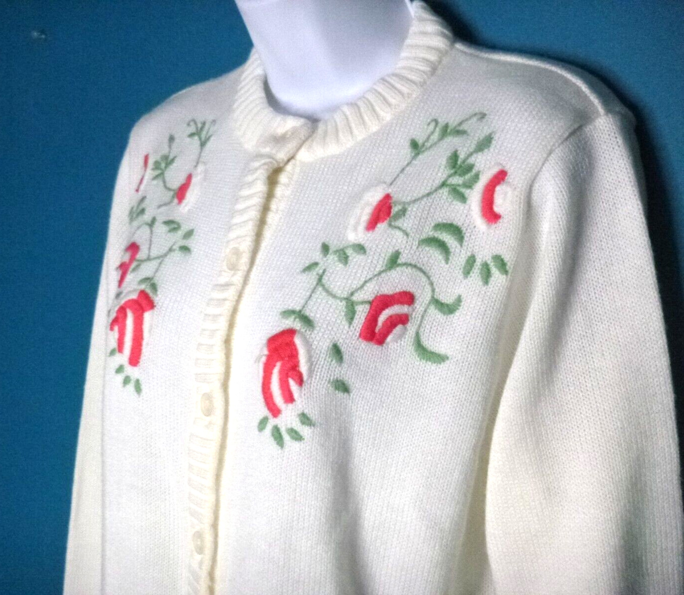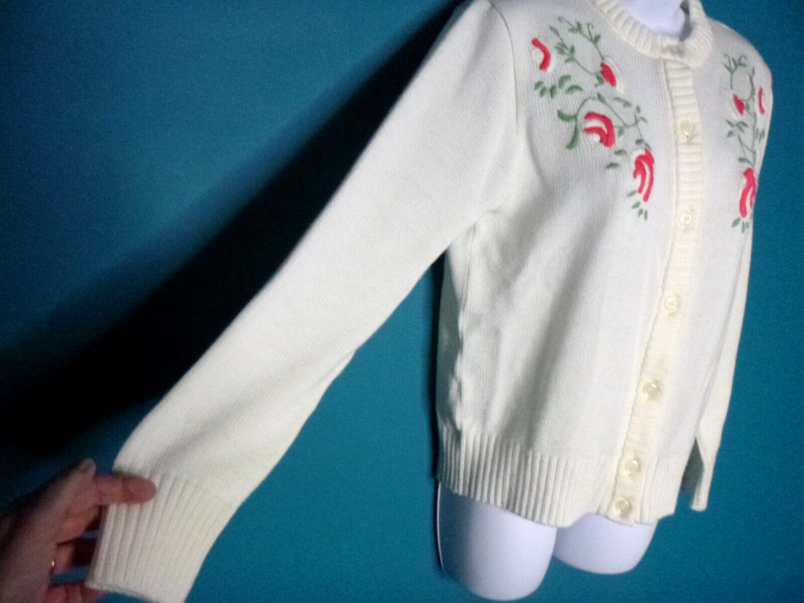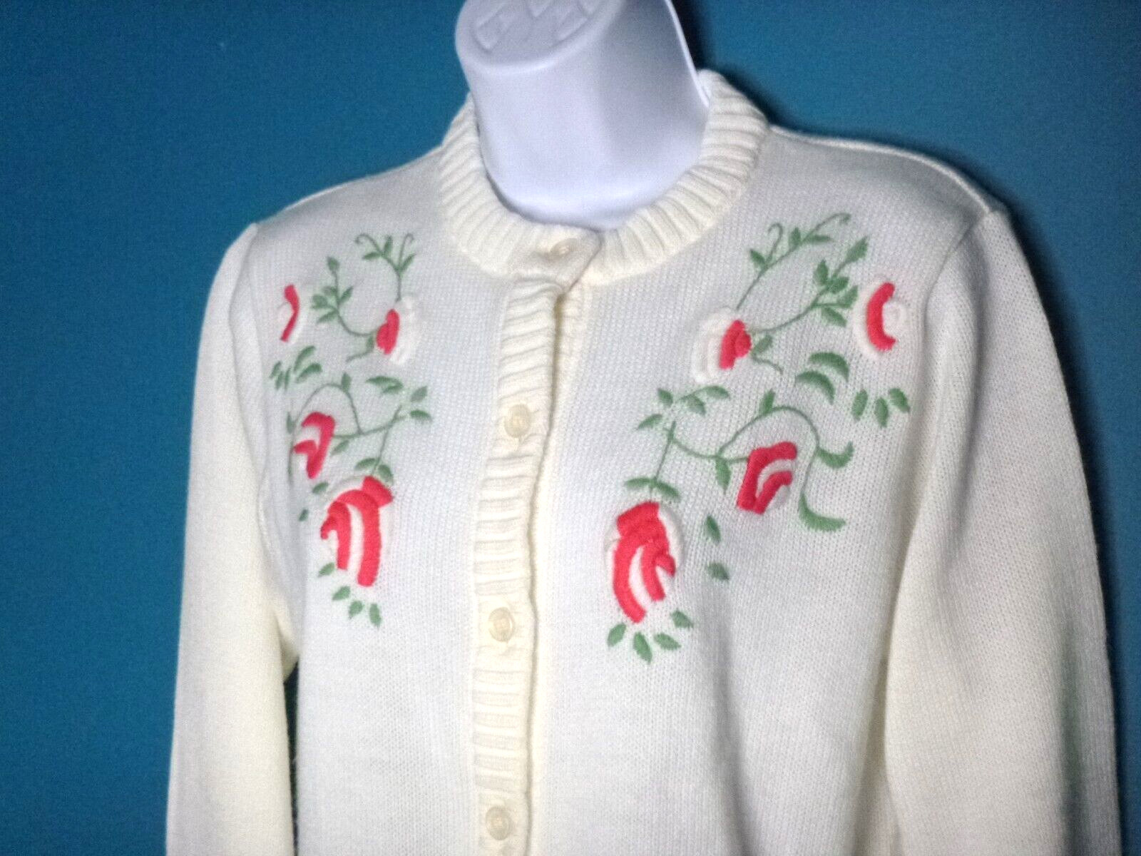 как выглядит Vtg Acrylic Cardigan Off White W/ Floral Embroidery Sz 38 Made in Austria фото