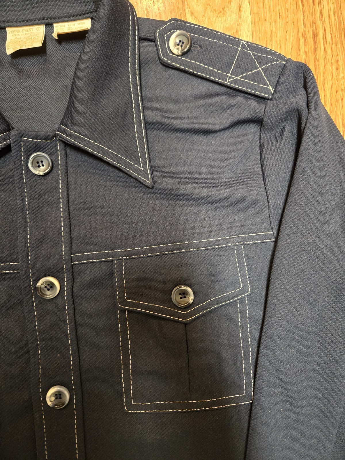 как выглядит Vtg Sears Kings Road 60s-70s Navy Blue Shirt Jacket Hippie Western Mens L фото