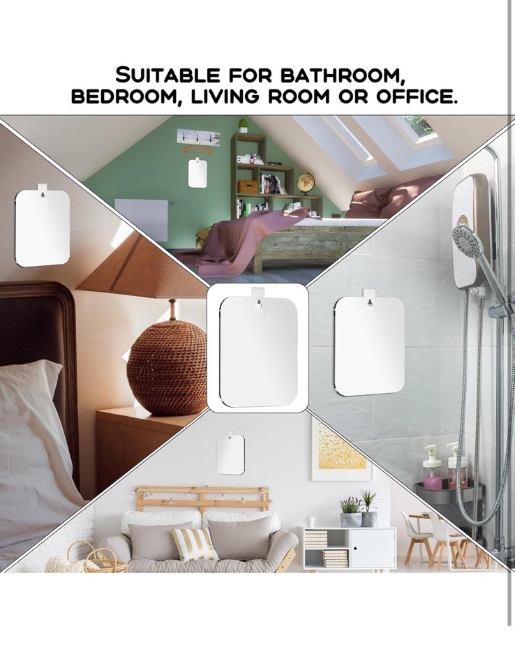 4 Pack 8X6 Fogless Shower Mirror For Shaving Mirror Wall Hanging- Bathroom New