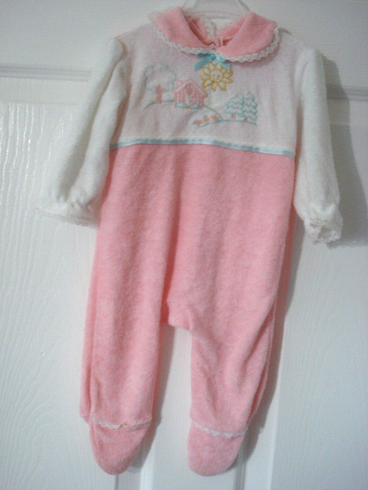 Vintage Carters Infant Girl Pink Footed Terrycloth Sleeper Lace House Sun Size M