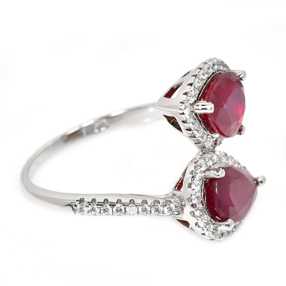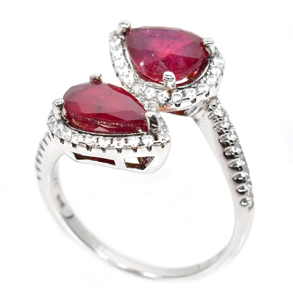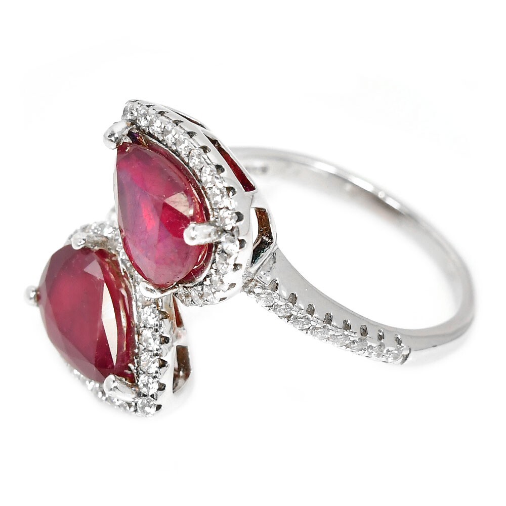 как выглядит 925 STERLING SILVER RING GENUINE BLOOD RED RUBY PEAR WITE CZ GEMSTONE SIZE 8.5 фото