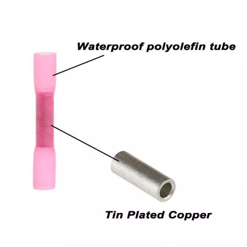 1000PCS Heat Shrink Waterproof Wire Connectors Red 22-16 AWG Butt Seal Terminals