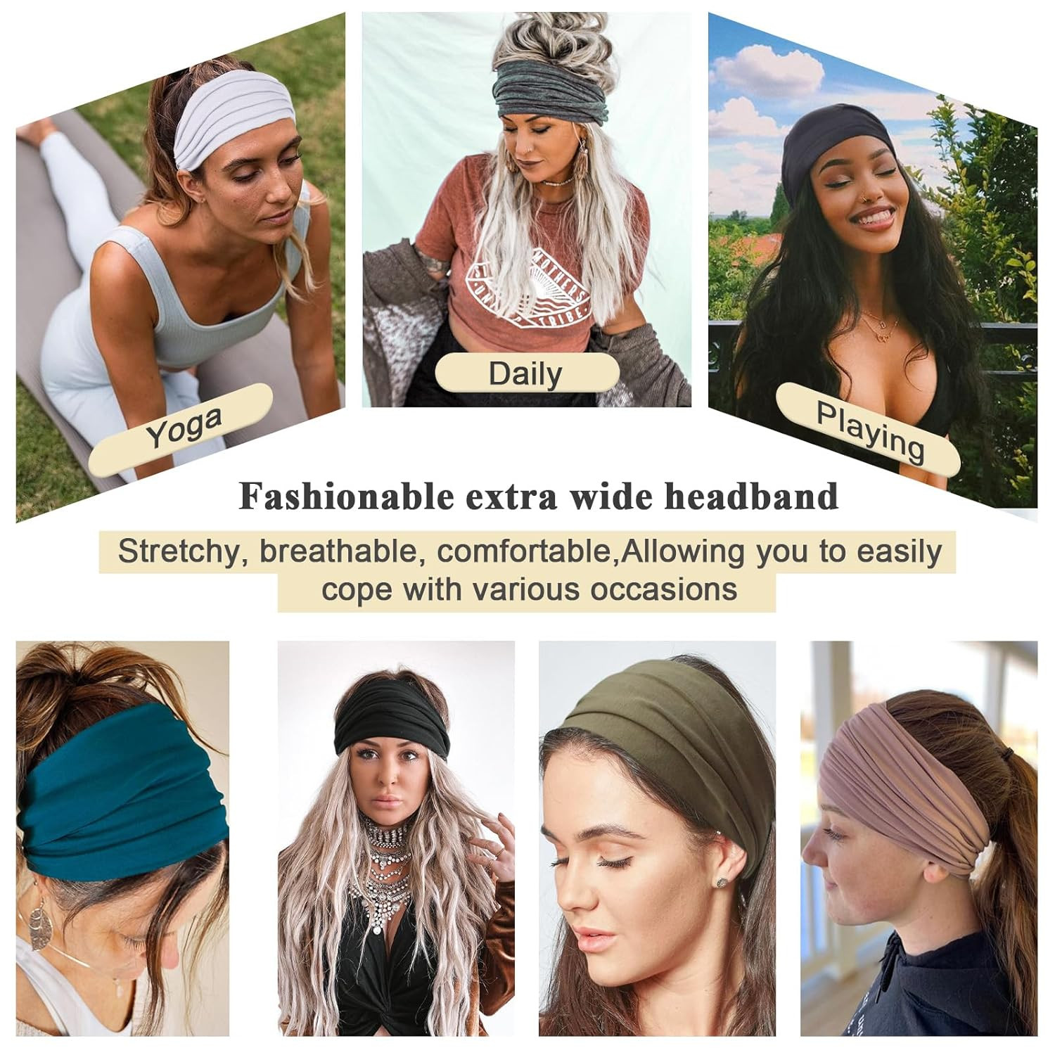 6 Packs Wide Headbands for Women Stretch Fashion Headband Hair Band Turban