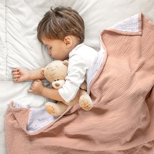 Muslin Baby Blanket - Cotton Quilt Blankets for Toddlers - Reversible Nursery