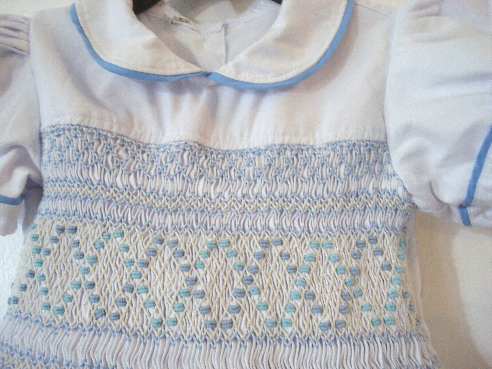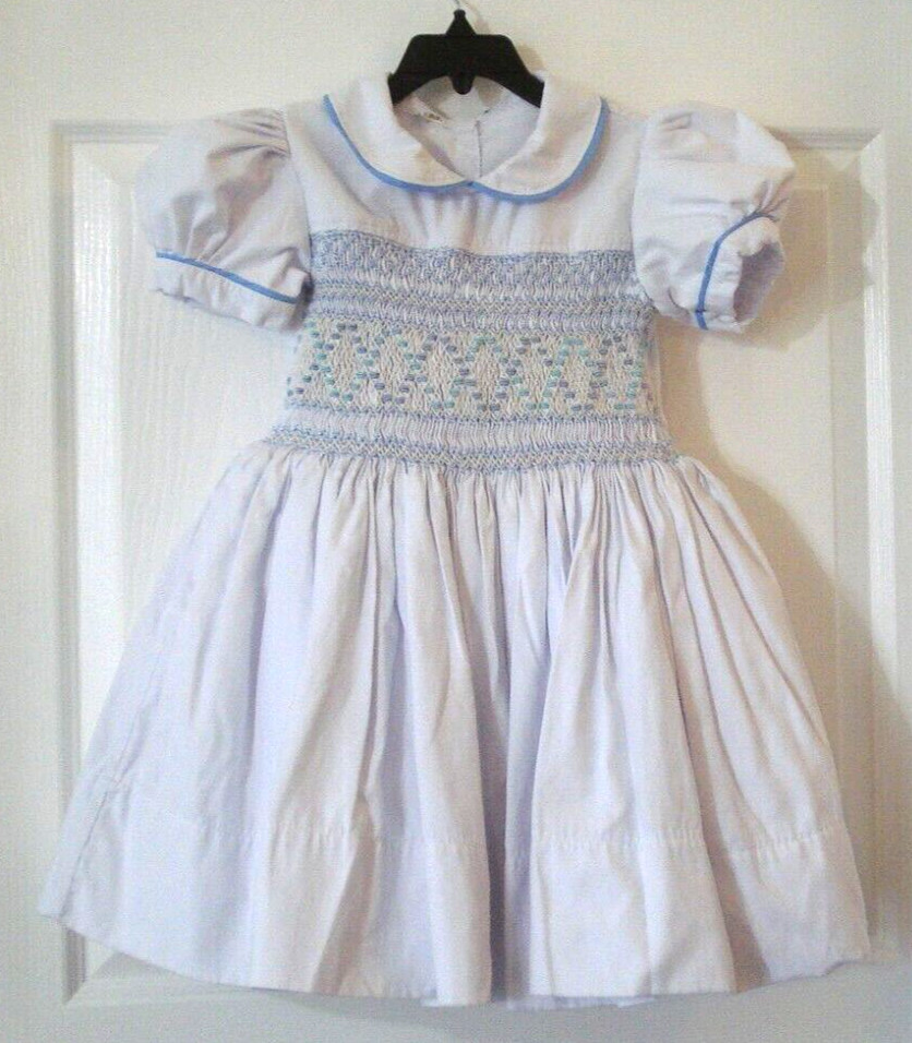 как выглядит Vintage Girls White Blue Smocked Dress Size 6 фото