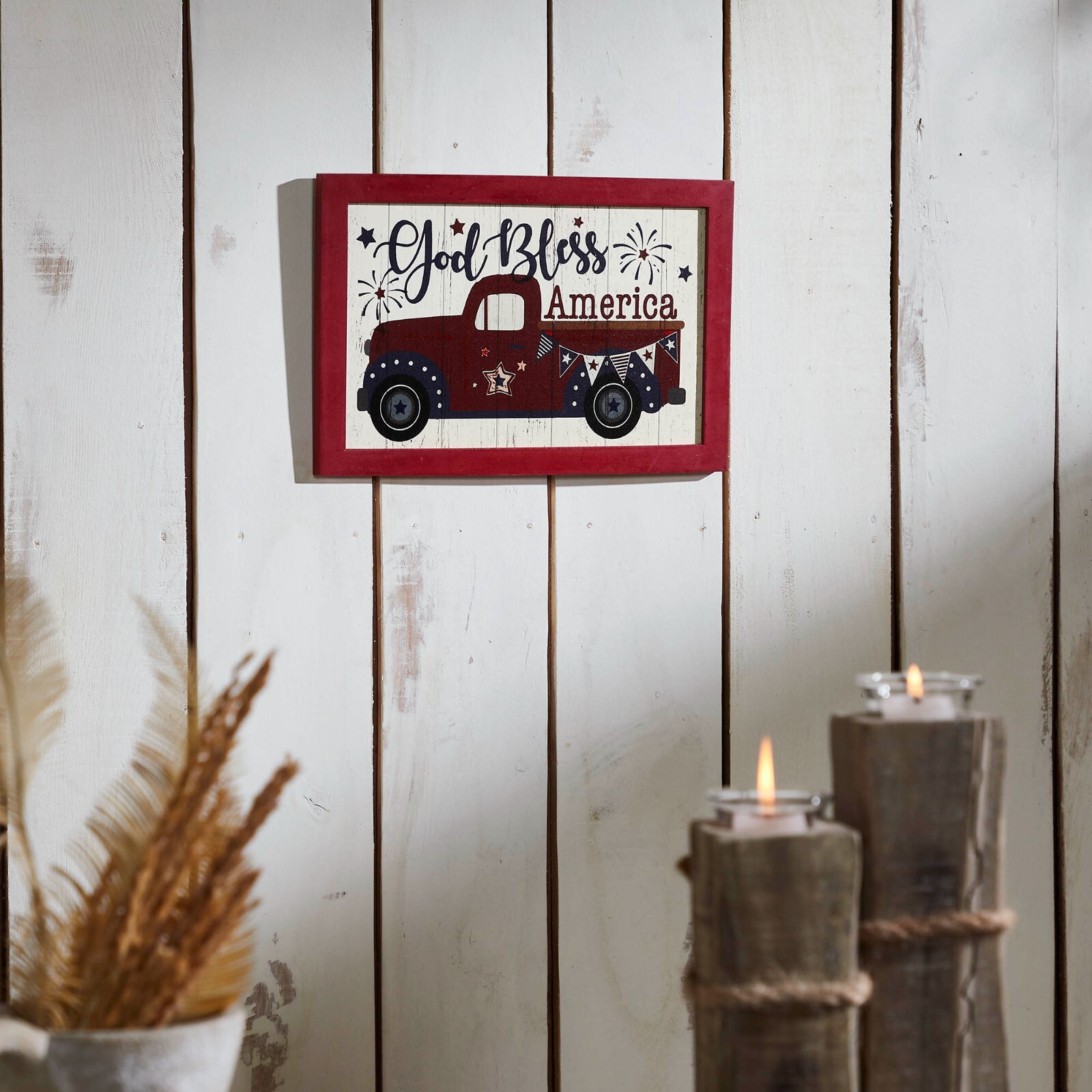 Shiplap God Bless America Red Truck Wall Sign 8x12 Patriotic 4th of July