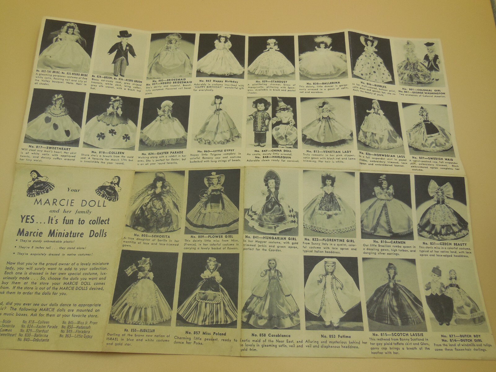VINTAGE ADVERTISING PAMPHLET FOR MARCIE MINIATURE DOLLS / PROMPT SAFE SHIPPING
