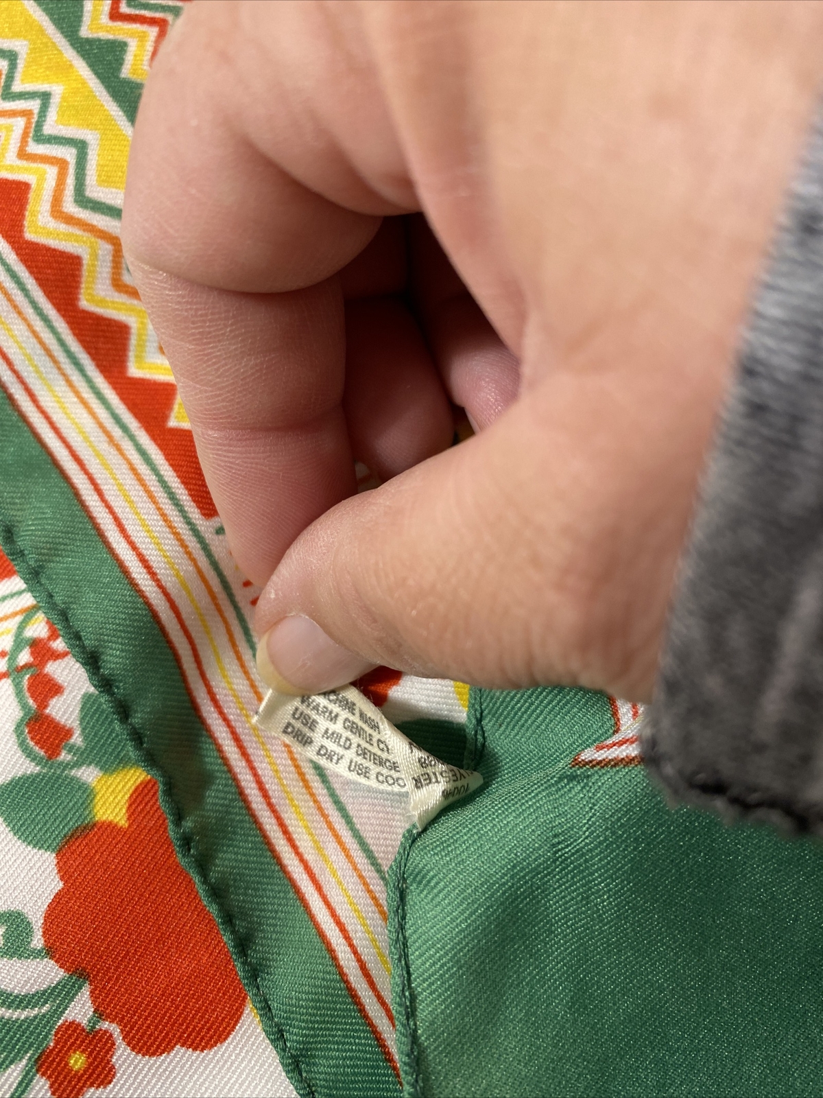 как выглядит Vintage Scarf BAAR BEARDS GREEN scarf MADE IN ITALY 46x10 Floral Chevron фото