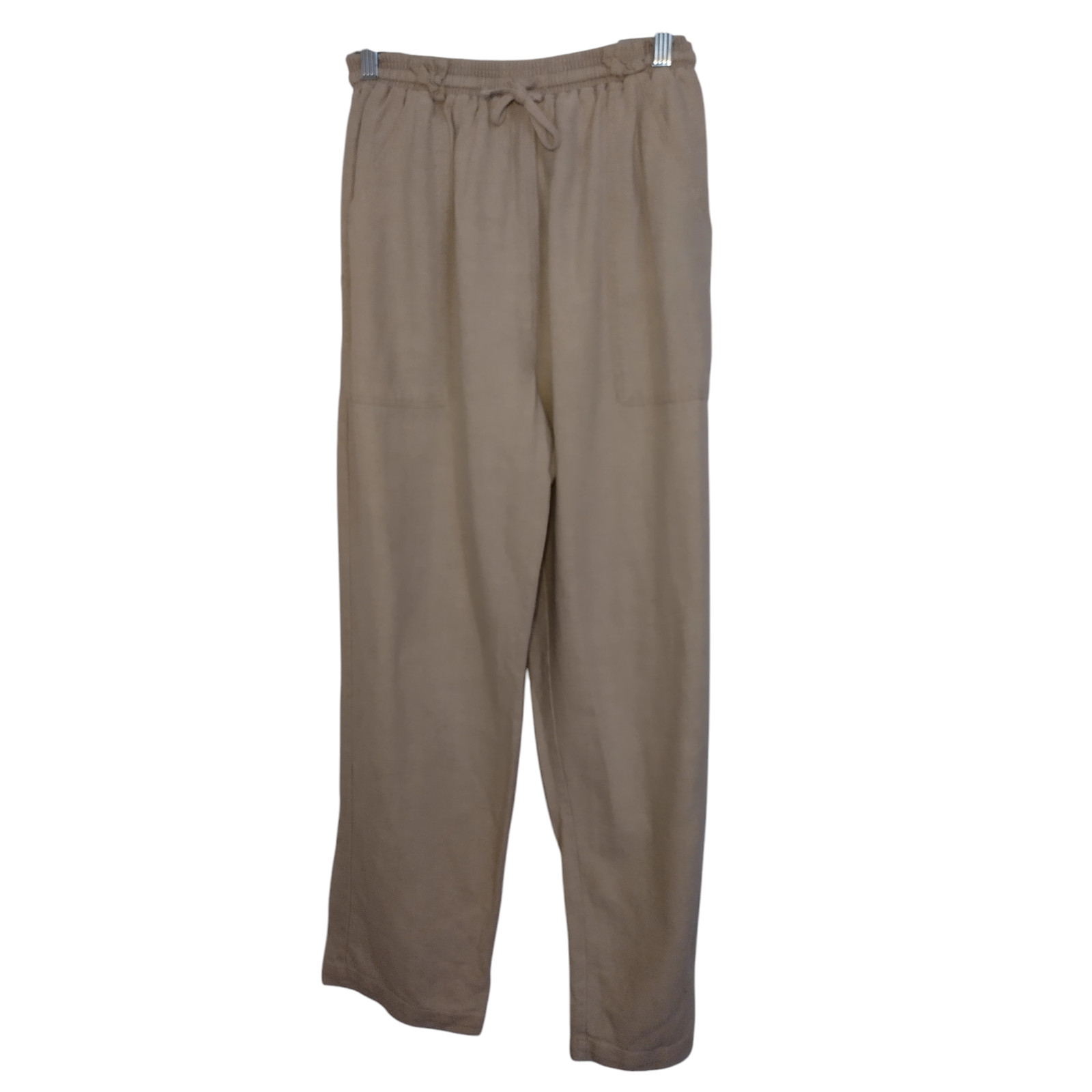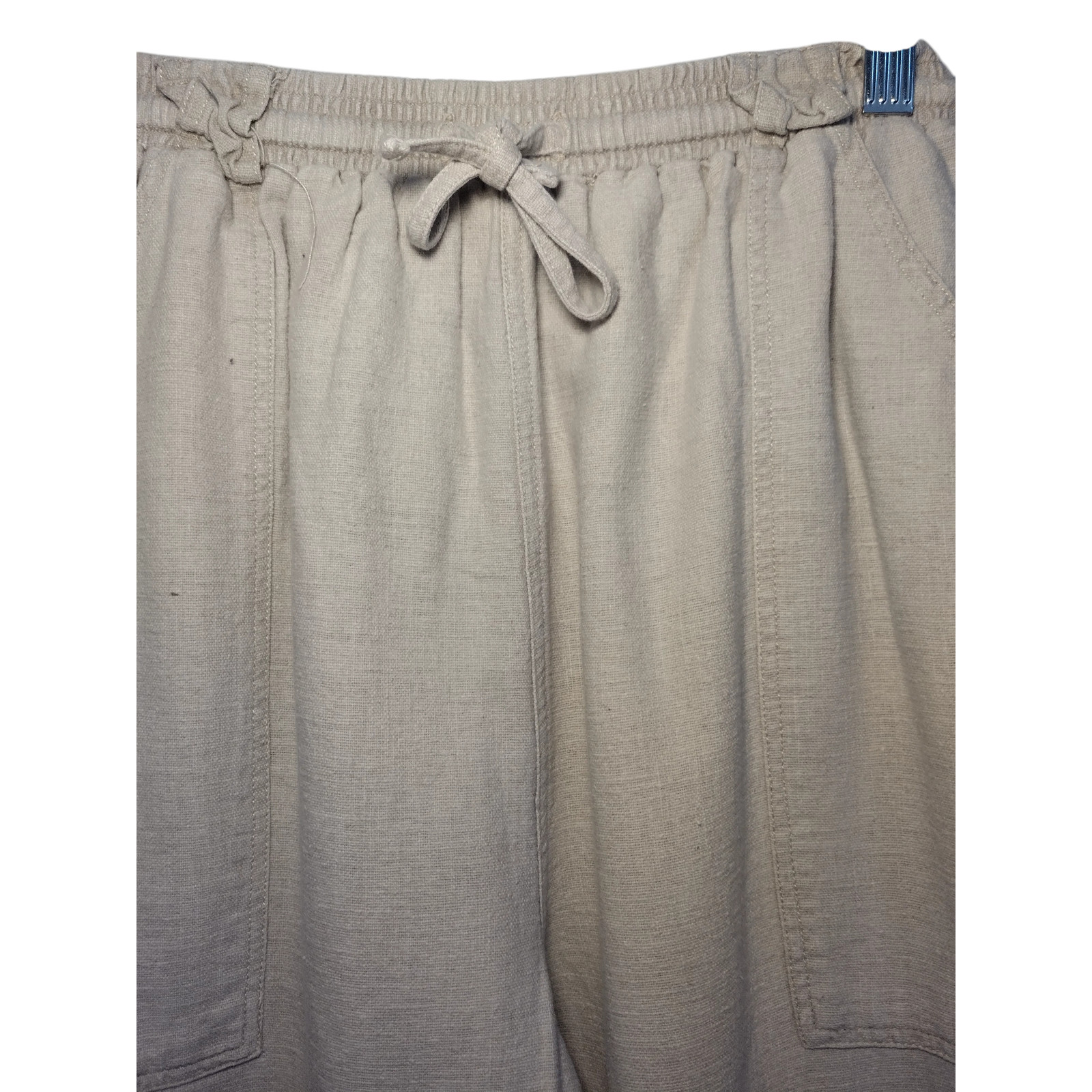 Erika Collection Ankle Pants Drawstring Straight Leg Linen Blend Tan Womens S