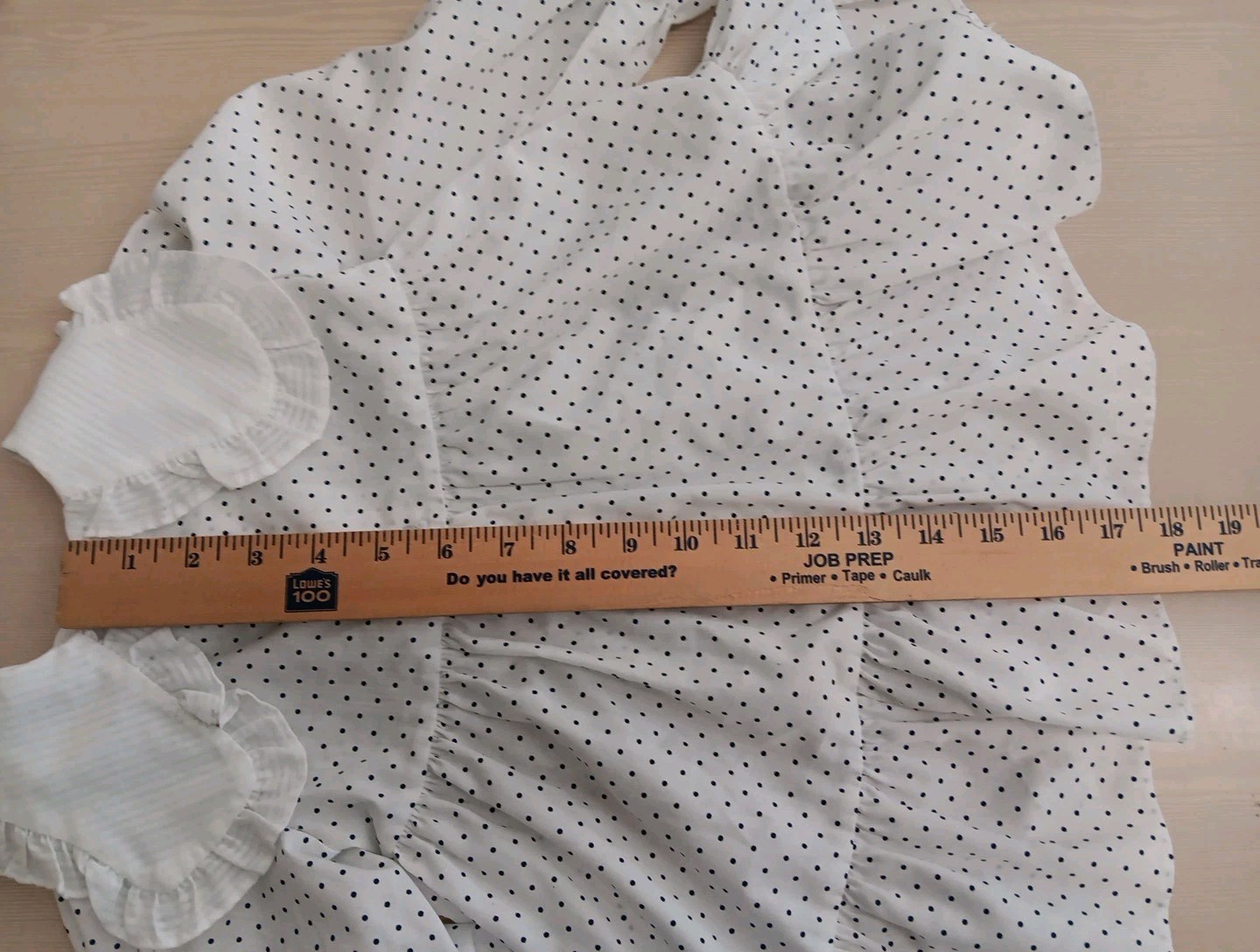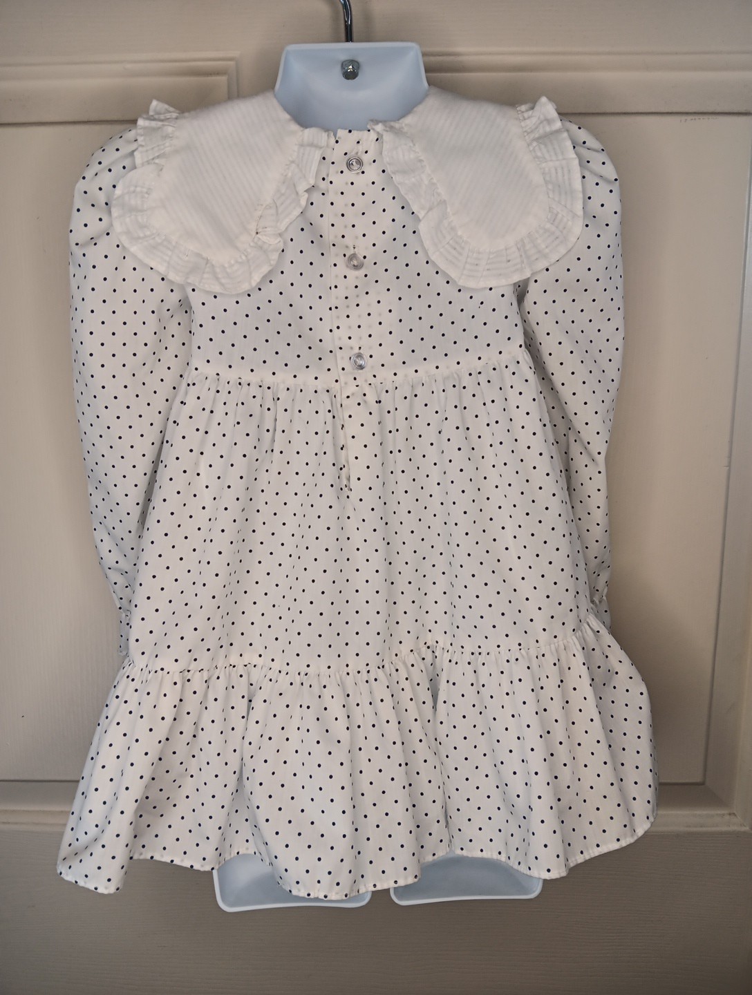 как выглядит VTG Polly Flinders Dress Firls Size 3 White w/ Blue Polka Dot Smocked Front EUC фото