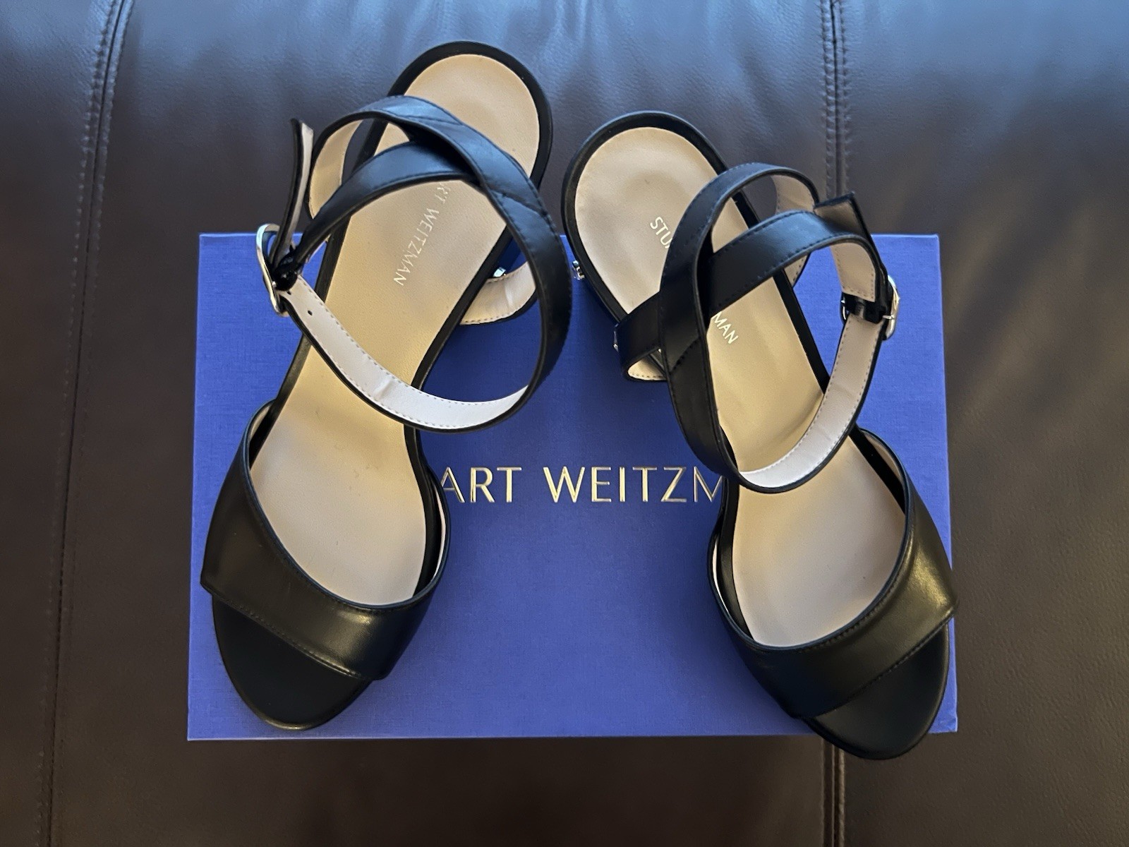 как выглядит Stuart Weitzman Allshine Block 75 Leather Sandal - Black - Size 8 - NEW фото