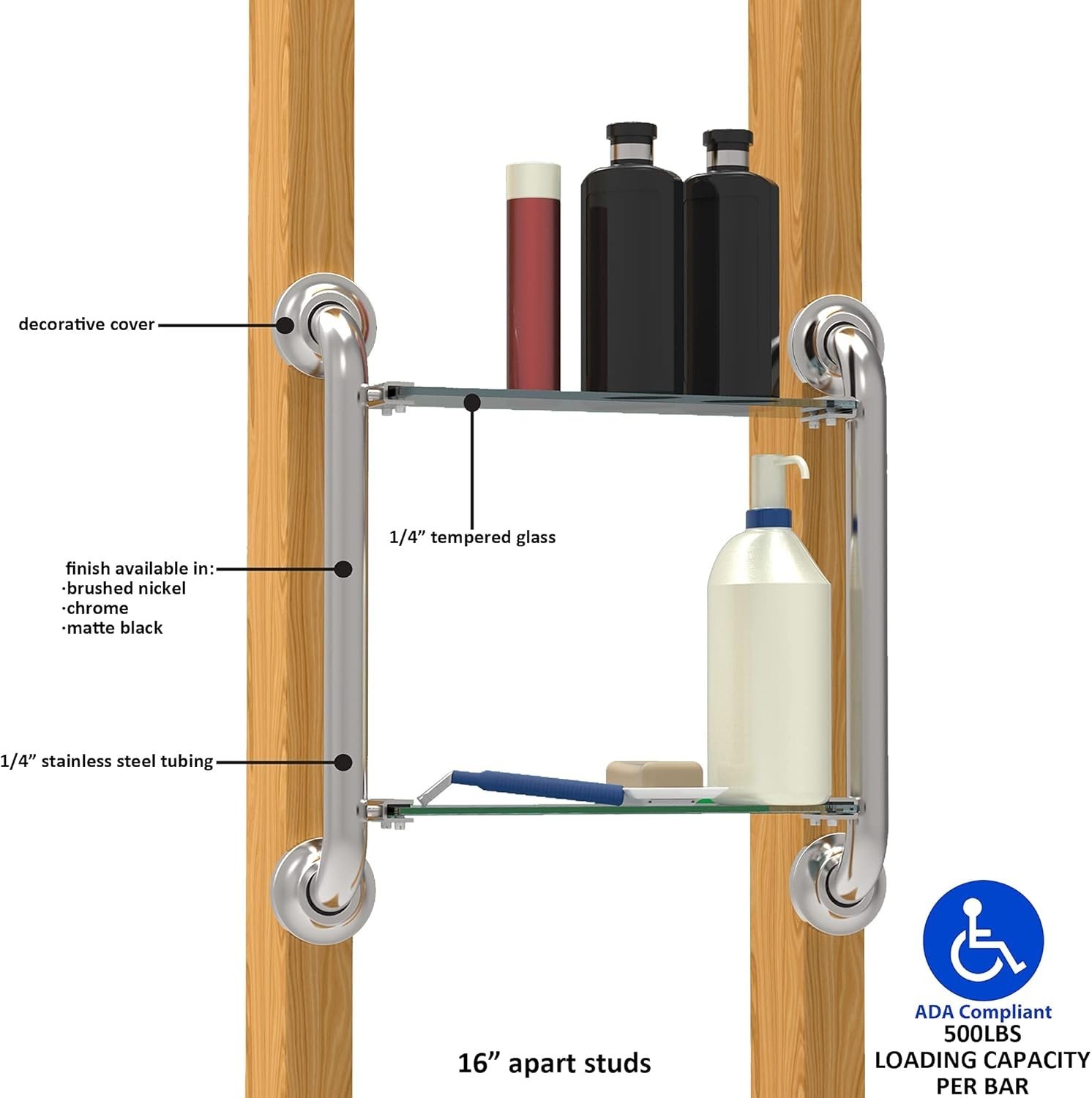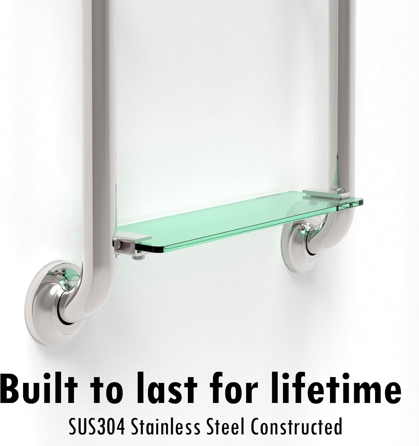 500lbs Support 1.25in x 16in Double Grab Bars with 2 Tiers Tempered Glass Shelve