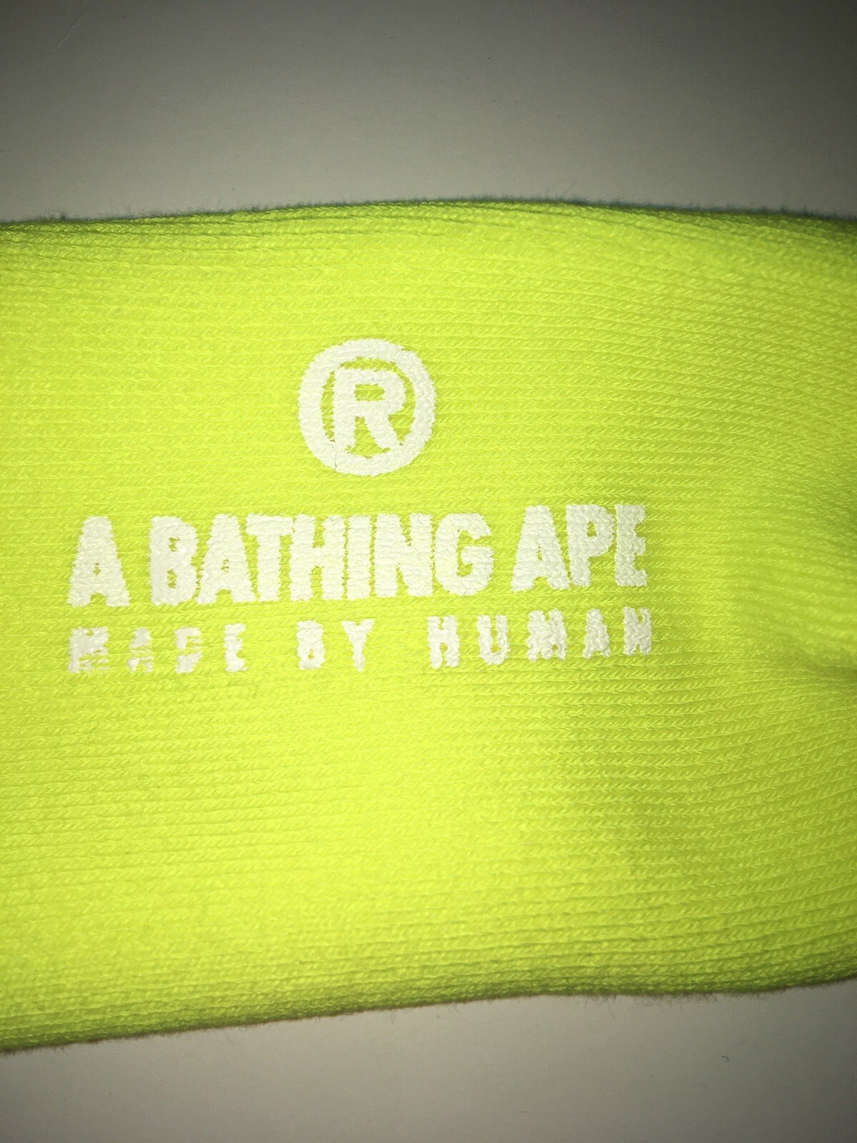 как выглядит Rare Og Bape Socks Early 2000s Neon Yellow White Bape Socks Rare Nigo Era фото