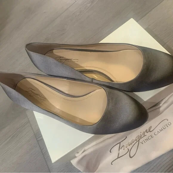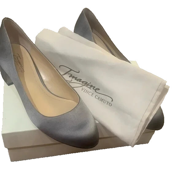 как выглядит IMAGINE VINCE CAMUTO Helsh Pumps Storm Gray Satin Shoes Size-9.5M NIB R- 118 фото