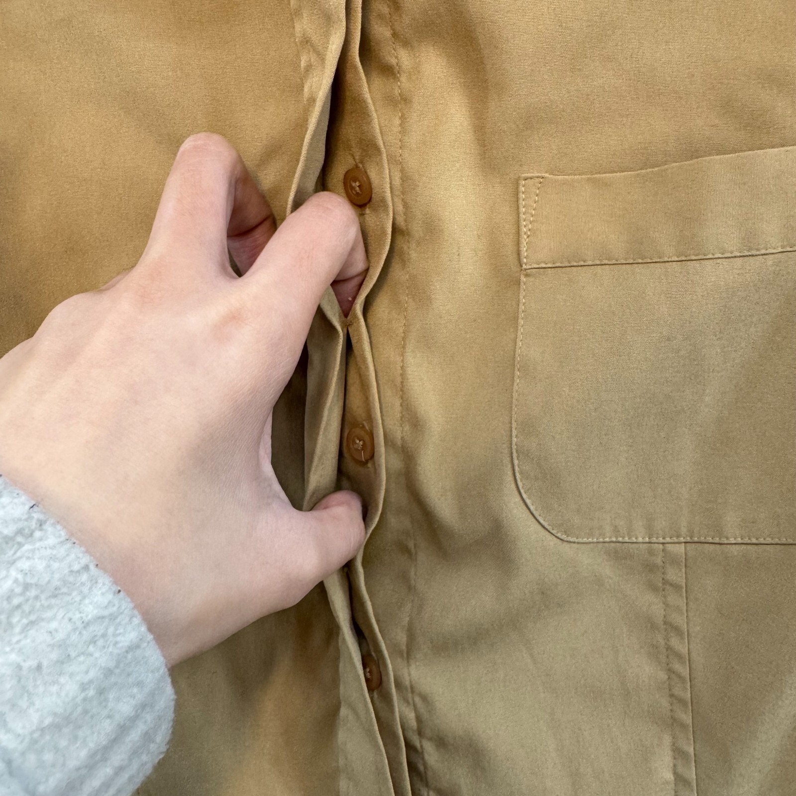 как выглядит Y2K Vintage Express Dress Shirt 6 Medium Khaki Tan Button Blouse Corpcore Career фото