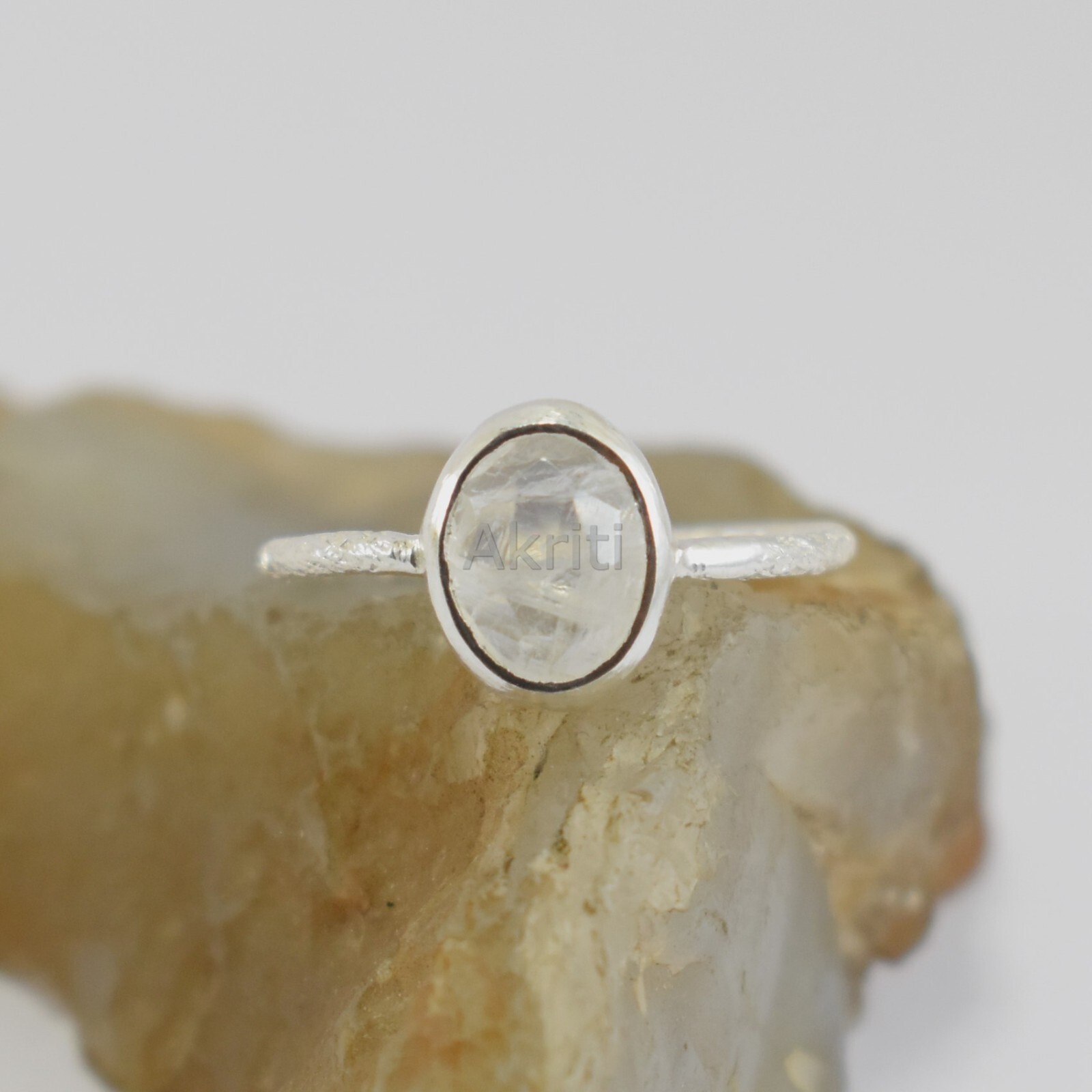 Daily Wear Natural Moonstone 925 Sterling Silver Ring With Tiger streach Band