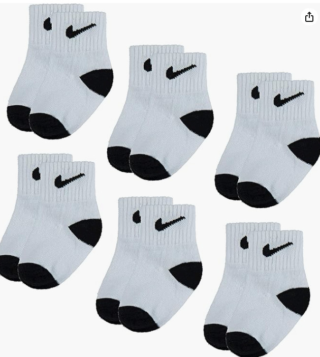 как выглядит Nike Boys Ankle Socks 6 Pairs, White/Black, 3/4.5 фото