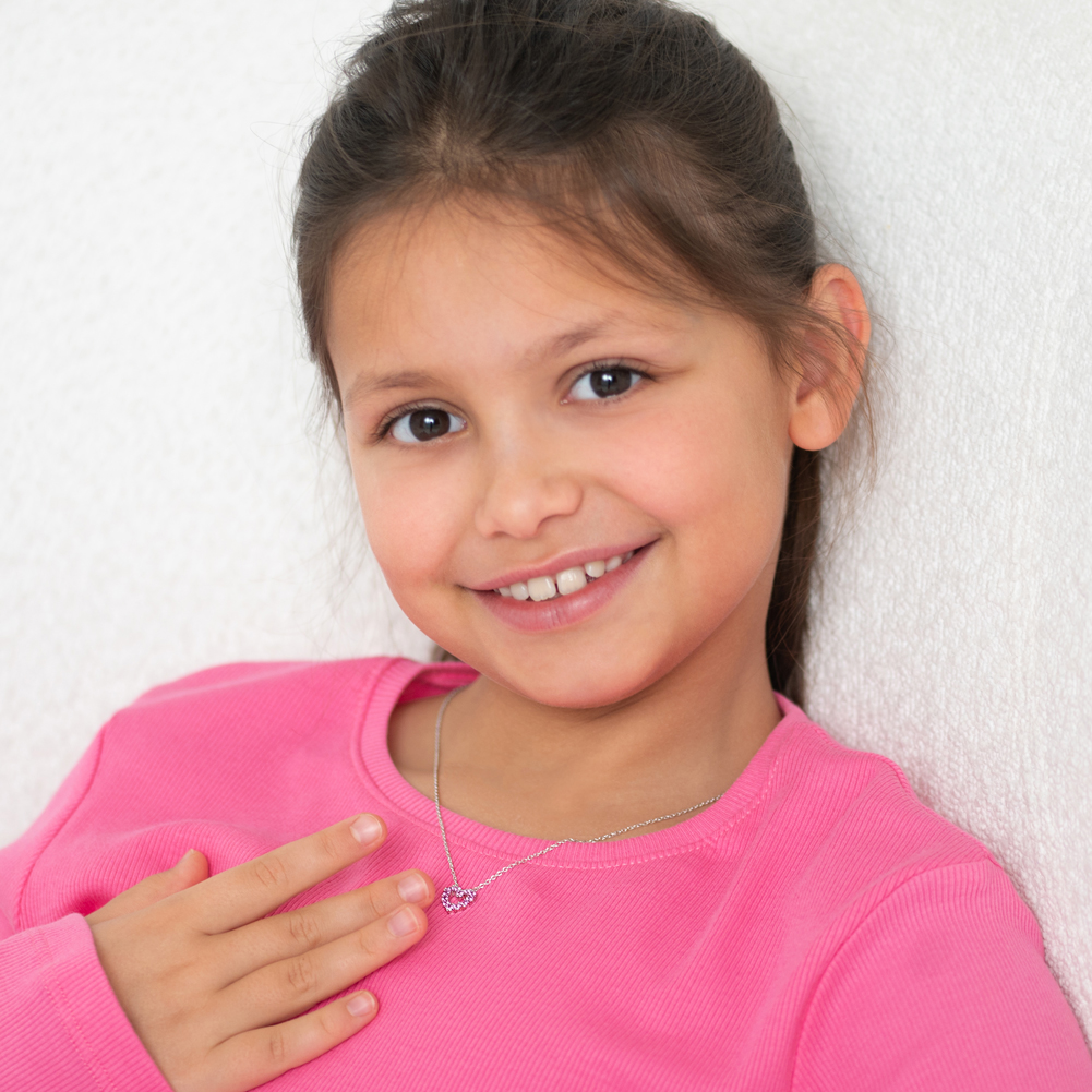 925 Sterling Silver Girl's 17 Bright Cubic Zirconia Open Heart Pendant Necklace